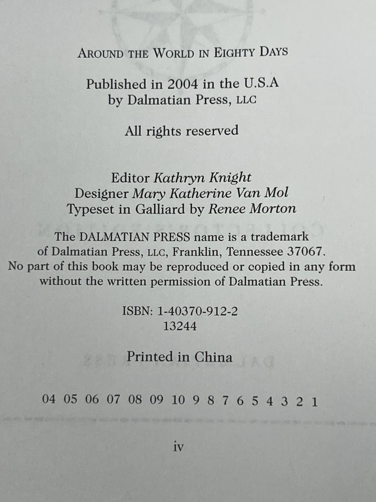 Around The World In Eighty Days: Collector's Edition by Jules Verne - 2004 Leather-Bound Hardcover Published by The Dalmatian Press Please see pictures to determine the exact condition of this book. Please send a message if you have any questions. We ship promptly.