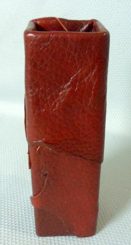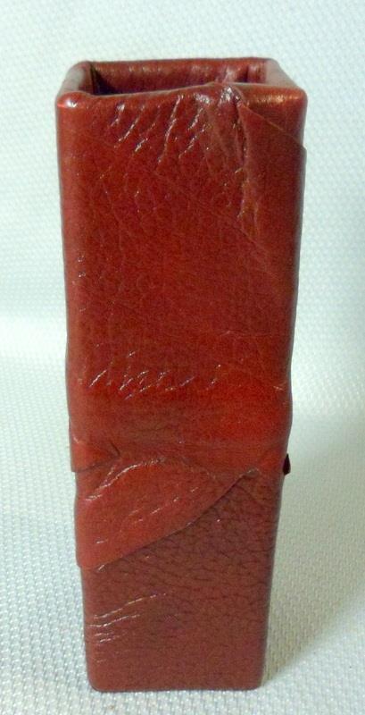 Arts & Crafts Leather Bound Vase Arts & Crafts Leather Bound Vase Click images to enlarge Description Deep maroon hue leather, showing an Arts & Crafts style, measuring 8” tall. Excellent condition. Payment Payment must be received within 3 days. NOTE: PLEASE WAIT FOR INVOICE BEFORE PAYING on auction items (excluding Buy It Now) or you may pay too much for shipping! Items with free shipping need not wait for an invoice. Thank You! Shipping All shipping charges include a handling fee. Insurance is included with handling fee for delicate items. Shipping will be by USPS First Class Mail on items weighing less than 5 ounces, by USPS Priority Mail on items weighing over 5 ounces and in some cases USPS First Class, and by USPS Parcel Select/USPS Retail Ground on items weighing over 4 pounds (unless USPS Priority Mail is less) for US domestic purchases. US Domestic larger and/or heavier items cost more, so FedEx Home Delivery, FedEx Smartpost and UPS Ground are available options and will be used if found to be cheaper when creating shipping labels. USPS Priority Mail includes tracking. US Domestic shipping is free via First Class Mail for items weighing less than 5 ounces. Please keep in mind there is limited tracking available for First Class Mail and no insurance against loss or damage. International items will be shipped via USPS First Class Mail International for unbreakable items weighing less than 4 pounds, and via eBay International Standard Delivery or Priority Mail International on all others unless requested with conditions. Please keep in mind there is no insurance for lost items and no tracking available for First Class shipping to some countries. Larger, heavier odd shaped items will cost more to ship so take this into account when bidding!! Most items will be shipped within 1 day of receipt of payment. I do combine shipping on multiple orders from same auction . All above statements are true unless otherwise indicated on shipping invoice. Terms of Sale All sales are " AS IS " & used so PLEASE LOOK AT THE PHOTOS, READ THE DESCRIPTION & ASK QUESTIONS!!! What you see in the photos is what you will be gettin g unless specifically noted in description . We are not experts in everything & some things may seem to be complete to us but in fact are missing a part that we are not aware of, SO ASK QUESTIONS!!! Items such as glass & pottery have characteristics that occur from the mfg process. If you can't live with a straw mark in a glass bowl or a flaw in a piece of art glass please do not bid. Due to editing, colors of items may be slightly different in person. Contact Us You can contact us through eBay Messaging. Images sell! Get Supersized Images & Free Image Hosting Create your brand with Auctiva's Customizable Templates. Attention Sellers - Get Templates Image Hosting, Scheduling at Auctiva.com. Track Page Views With Auctiva's Counter