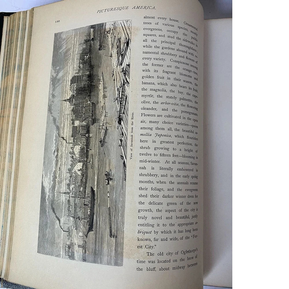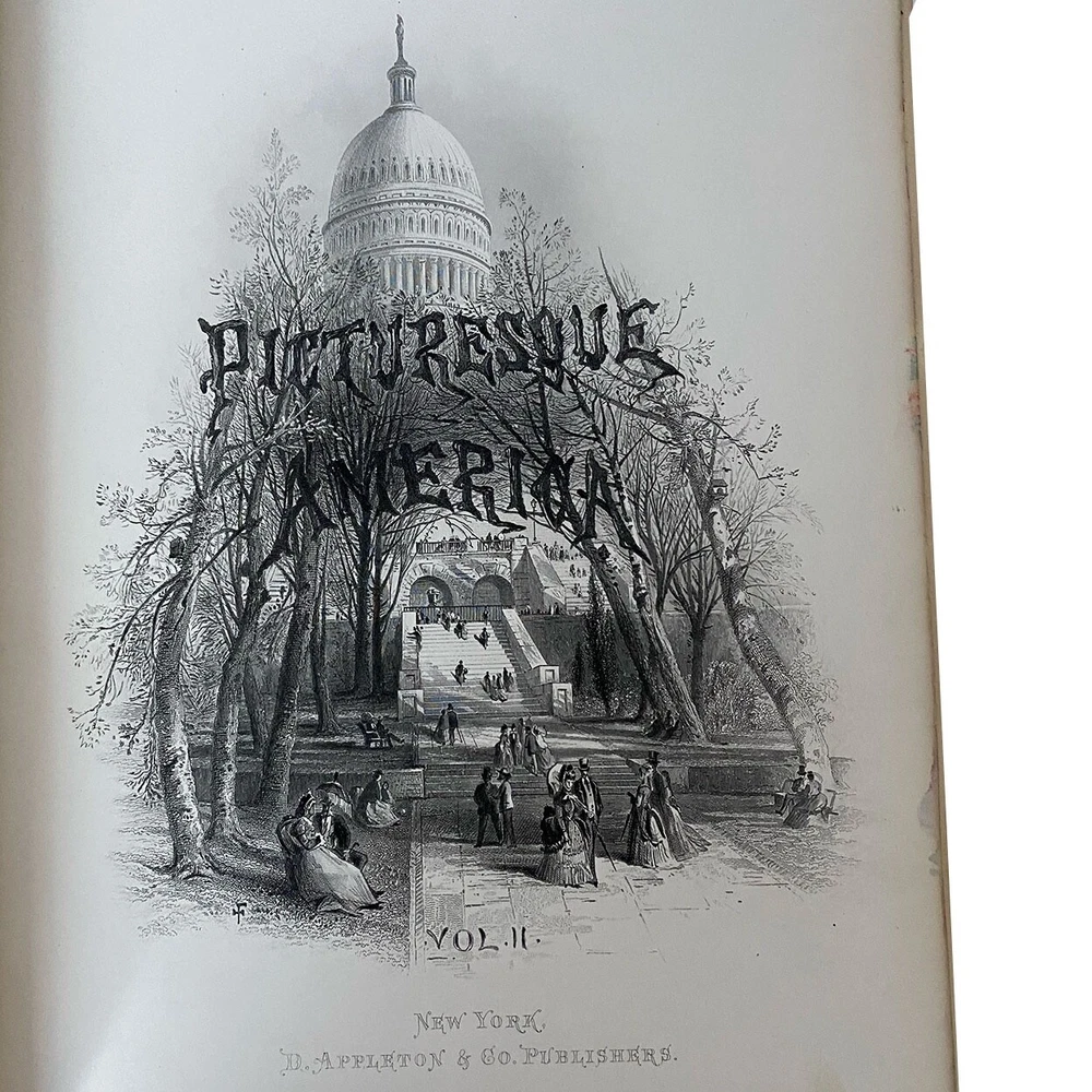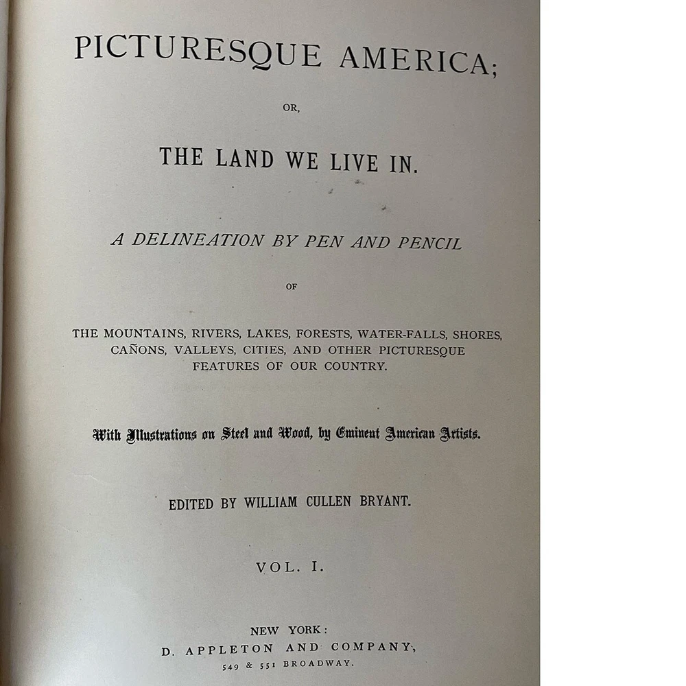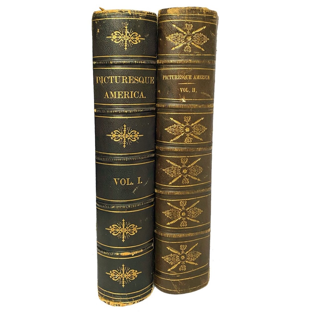 DETAILS An antique set of two books capturing the scenery of America. Includes images by some of the best American landscape artists of the 19th century including John Frederick Kensett, James David Smillie, Thomas Moran, and Granville Perkins. This work is historically significant as it was thought to have influenced the growth of tourism and historic preservation in the north and south after the Civil War. TITLE Picturesque America or, The Land we Live In. A Delineation by Pen and Pencil of The Mountains, Rivers, Lakes, Forest, Waterfalls, Shores, Canons, Valleys, Cities, and Other Picturesque Features of Our Country. With illustrations on steel and wood, by Eminent American Artists. PUBLISHER D. Appleton and Company (New York, New York) BINDING Hardcover. Three quarter leather binding. Marbled endpapers. ILLUSTRATED Engravings by various artists. (900) vignette and full page wood engravings. (50) steel engravings. LANGUAGE English EDITION First Edition 1872-74 SUBJECT(S) Exploration and travel PLACE OF ORIGIN United States AUTHOR(S) Editor: William Cullen Bryant (American, 1794-1878) et al. Edited by romantic poet and journalist William Cullen Bryant, who was also the editor for the New York Evening Post. PERIOD Late 19th century DATE Copyright 1872, 1874 DIMENSIONS (2) Width 10 Depth 2.75 Height 12.5 inches CONDITION Note: assembled set. Mismatched bindings. Some stained pages. Separation of some pages (Volume II). Some page yellowing.