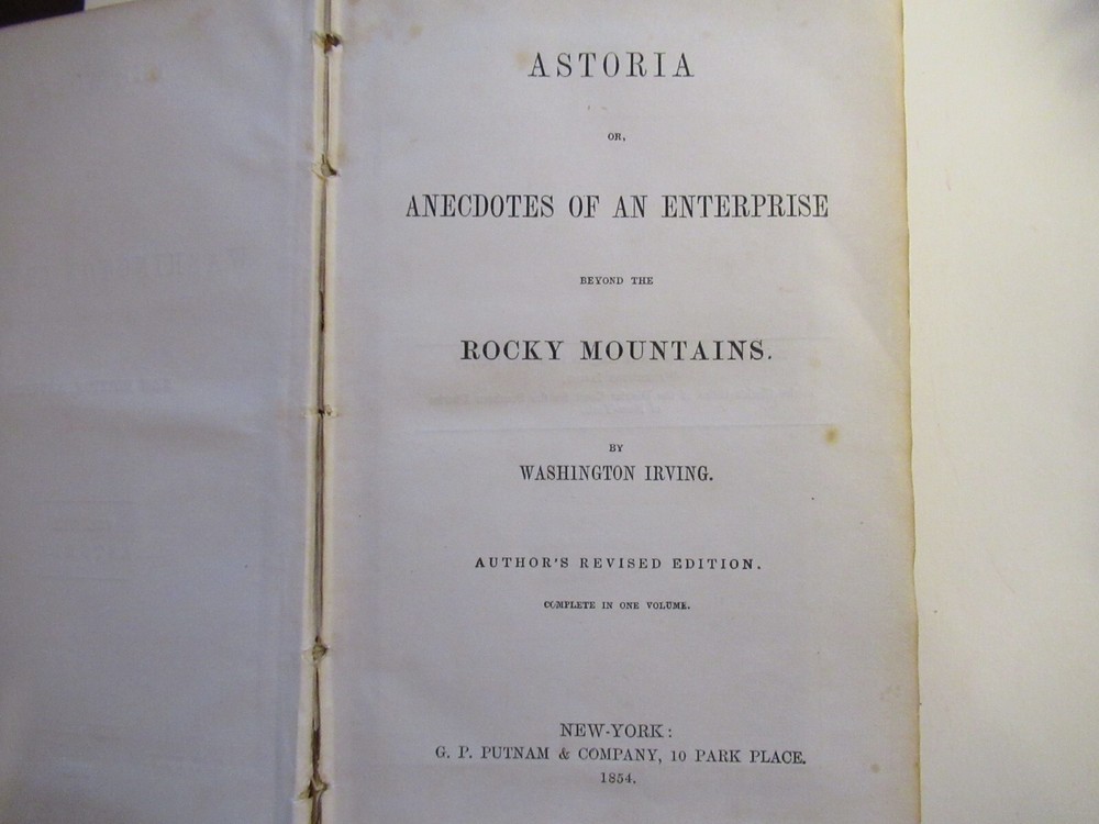 This rare and collectible hardcover book, titled "Astoria or Anecdotes of an Enterprise Beyond the Rocky Mountains" by Washington Irving, is a must-have for any book enthusiast. Published in 1854 by G.P. Putnam & Company, this book is a fascinating example of 19th century fiction and features a leather-bound cover. It contains a variety of interesting anecdotes and stories about the Astoria region. It is not signed or inscribed, but it is sure to be a valuable addition to any collection.