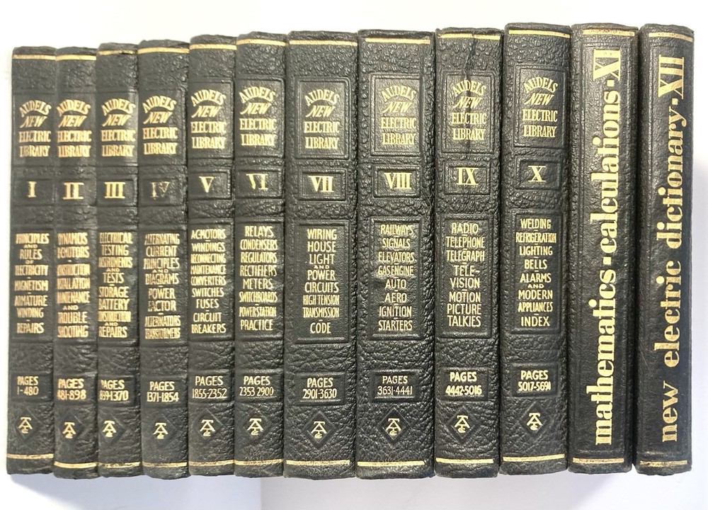 Audel's New Electric Library Books 12 Volume Set 1948. Condition is "Pre-Owned/Good/These books have wear not limited to scuffs, discoloration, foxing, worn edges, bends, creases, debris, spots or any imperfections due to age, use or storage. Could be further cleaned at your discretion. These books seem to be VERY NICE!” See photos for details. Books weigh and measure 10 Lbs., 5.6 Oz. Height 6 3/4” Length 5 1/4” Depth 3/4” to 1 1/4” Items packaged for shipping with protective materials and packing tape weigh, and measures about 12 Lbs., 10 Oz. Height 15” Length 12” Width 10” Shipped with USPS Media Mail Service or USPS Priority Mail Service at your choice. Ask questions prior to purchase. Payment due upon purchase. Shipment is only made to regular address, not to a PO Box, as eBay does not recommend it. Packaging is done with protective plastic for no water damage and ample amount of packing paper around item to prevent damage. These items come from a non-smoker and pet free home. There are no returns or cancellations and all items sold as is.