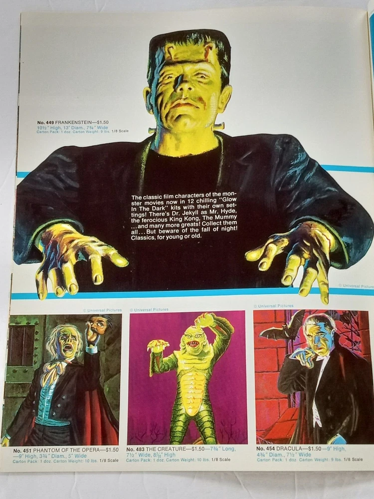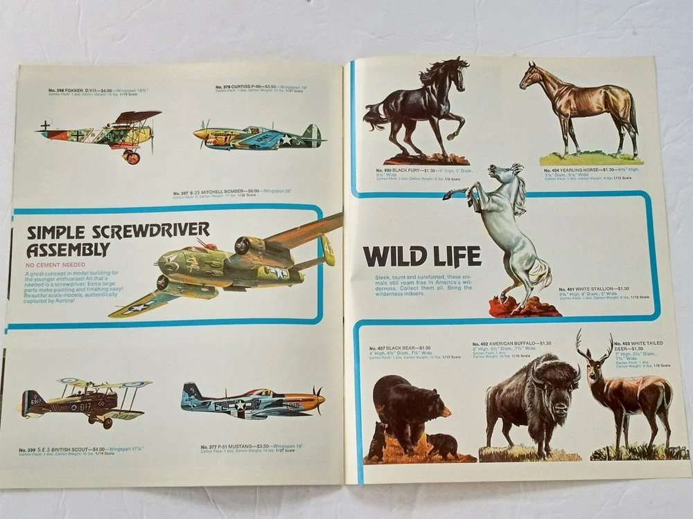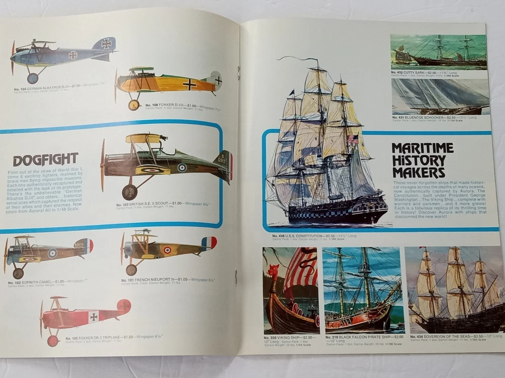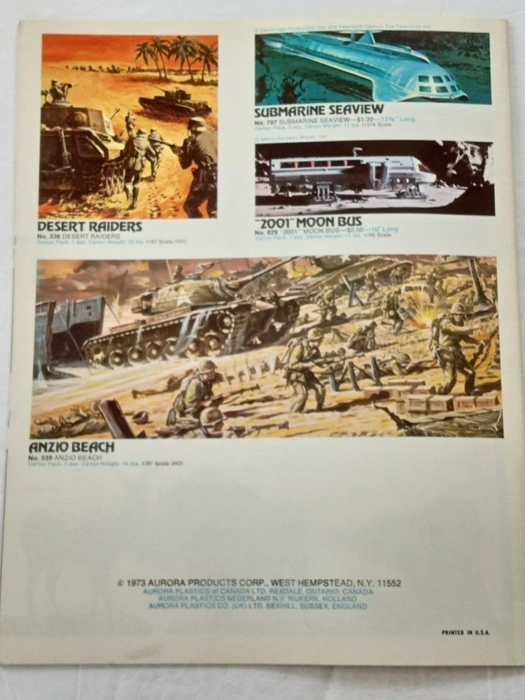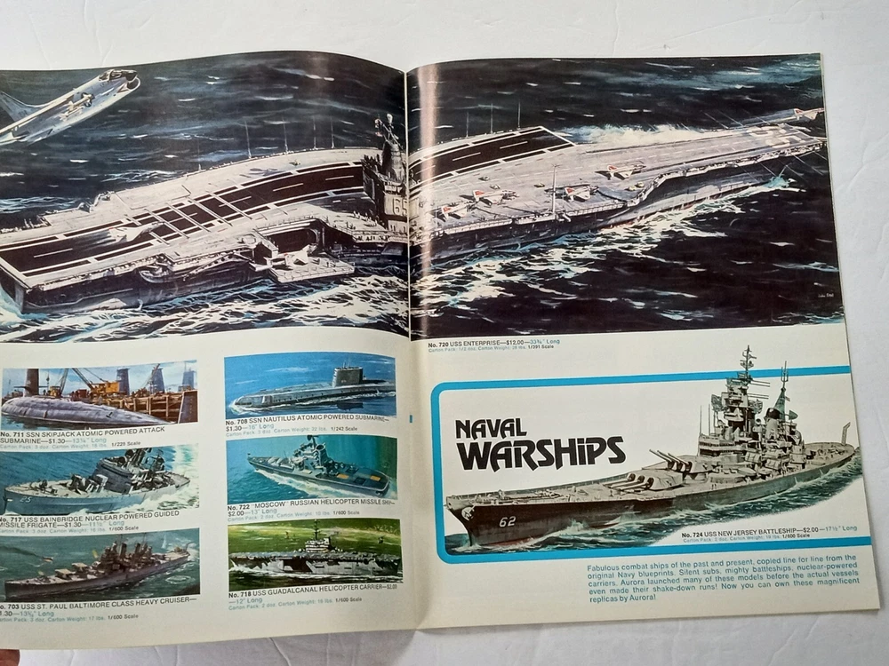 Vintage AURORA Hobby Kits 1973 Catalog from the ANDY YANCHUS Collection. 22 pages, full color featuring PREHISTORIC SCENES, GLOW MONSTERS Series, AIRCRAFT, ARMOUR, WILD LIFE, NAVAL WARSHIPS, THE GREAT SHIPS, JETS, CHOPPERS and ANZIO BEACH, 2001 MOON BUS, SUBMARINE SEAVIEW, DESERT RAIDERS and more. like new condition. please view all pics. I ship within 24hrs of cleared payment.