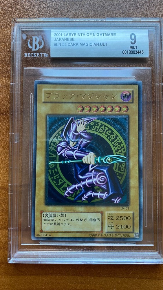 Unleash the power of strategy with the PSA 9 Dark Magician from the Yu-Gi-Oh! TCG Japanese LN-53 Labyrinth Of Nightmare set. This ultimate rare card is a must-have for collectors and players alike, featuring the enigmatic allure of the Dark Magician in a stunning Japanese translation that nods to its 2001 origin. Enhance your deck with the multi-color attributes of this GX specialty card, all while enjoying the standard card size for seamless integration into your existing collection. Crafted from durable card stock, this piece remains a treasured addition for those over the age of 6, who appreciate the intricate world of Yu-Gi-Oh! TCG.