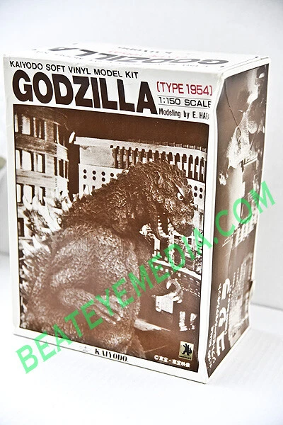 VERY RARE! Kaiyodo Godzilla 1954 STYLE - SOFT VINYL MODEL KIT. VINTAGE, ORIGINAL & UNBUILT. BOX HAS DAMAGE. WE SHIP WORLDWIDE. WATERMARK IS NOT ON THE ACTUAL ITEM. CALIFORNIA RESIDENTS MUST ADD 10.25% SALES TAX. CONTACT FOR MORE INFO. WE SHIP WORLDWIDE. WATERMARK IS NOT ON THE ACTUAL MODEL. LOOK AT OUR OTHER AUCTIONS FOR MORE BILLIKEN ITEMS! WE ALSO SELL ANIMATION ART, MOVIE / CONCERT POSTERS & OTHER RARE COLLECTIBLES. WE ACCEPT PAYPAL ONLY. ALL PAYMENTS DUE WITHIN 7 DAYS OF THE END OF AUCTION. CALIFORNIA RESIDENTS MUST ADD 10.25% SALES TAX. ALL SALES FINAL. WE ARE NOT RESPONSIBLE FOR ANY LOSS, DAMAGES OR MISHANDLING DUE TO SHIPPING. ALL CLAIMS MUST BE WITH THE SHIPPER.