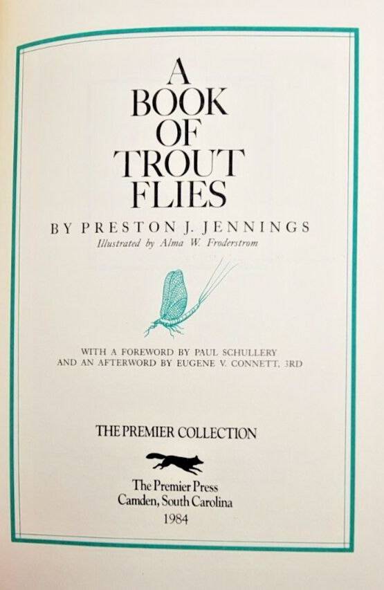 A Book of Trout Flies by Preston J. Jennings Limited Edition Illustrated by Alma W. Froderstrom Three thousand copies have been printed for the Premier Collection This book is number: 2385 Premier, 1984. Minimal shelf wear and rubbing. Beautifully decorated boards with gold gilt and satin ribbon. A solid, collectible copy.