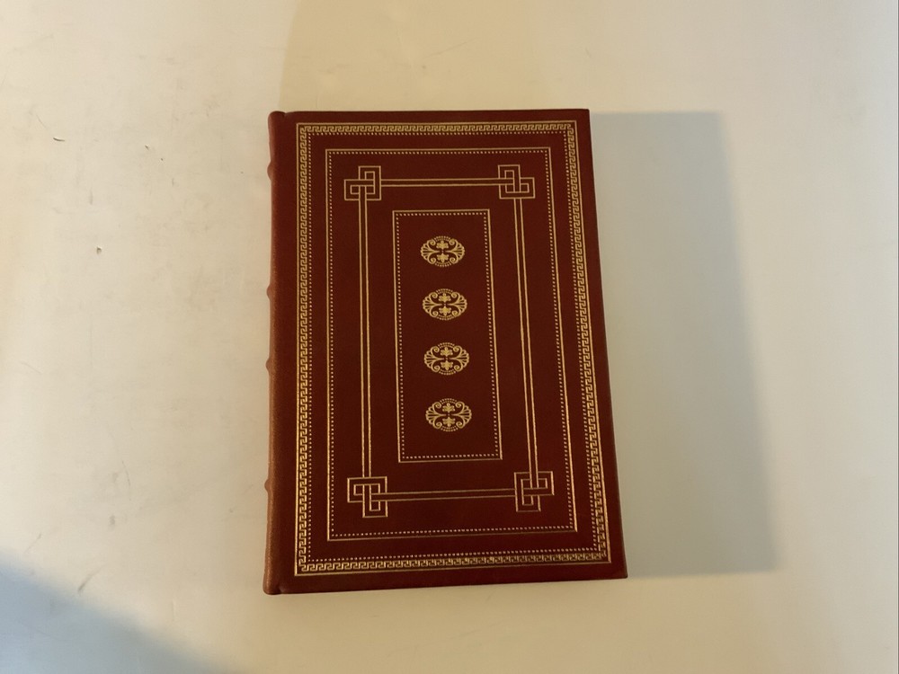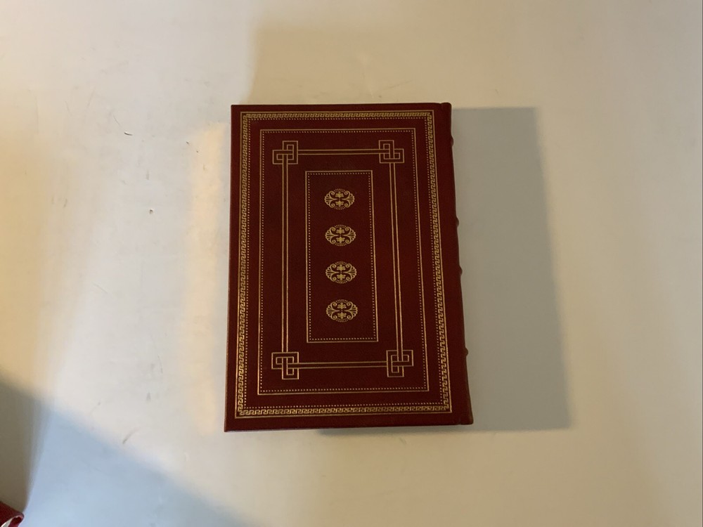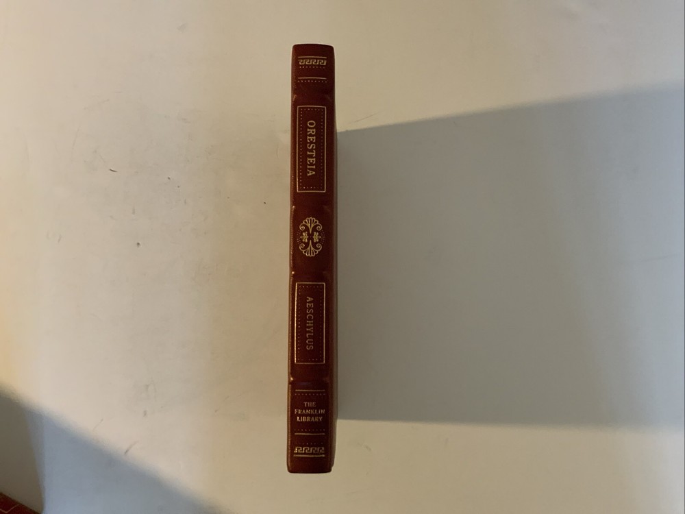 This is a beautiful, red leather copy of Oresteia of Guy Aeschylus, by Easton Press, copyright 1980. Published as part of the 100 Greatest Books of All Time. Printed on beautiful genuine moroccan cowhide leather, the book features raised bars on the spine, Silk ribbed endpages, satin silk bookmark. Printed on archival quality acid-neutral paper, that will last for generations without diminishing in quality or looks.