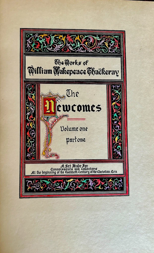 Beautifully Bound Set of “ The Works of William Makepeace Thackeray” THACKERAY, William Makepeace. “ The Works of William Makepeace Thackeray.” Illustrated by Richard Doyle. Smith & Elder Co., London: [1900]. Twenty quarto volumes. Each volume measuring approximately 10 1/4 x 7”. Each illustrated with a color frontispiece, title and numerous black and white plates throughout, each with a protective tissue guard. Finely bound in half crushed green morocco over green cloth, spines decoratively tooled in gilt compartments with five raised bands. All edges gilt. Gilt turn-ins elaborately tooled in gilt frames. Spine slightly sunned, minor rubbing to extremities, no previous owner’s notations. Overall, a near fine set. Gar1 Enamel Paint Samples For 19th Century Baby Carraiages, Ca. 1910 $175.00 Shop Photography Books, 1950’s $175.00 Shop Poetical Works of Robert Herrick 1928, 4 Volumes Illustrated $125.00 Shop Twin Set By Lucy-Fitch Perkins, 1900’s, Ten Books Rare Set First Editions $450.00 Shop Tucker Twins Set, Antique Books, Nell Speed, 1900’s, (6) $275.00 Shop Thorton Burgess Collection, 4 First Editions $200.00 Shop Travels In Italy, By the Author of Pinocchio, Scare Set, Collodi, 1891-94 $200.00 Shop Imperial Post Children’s Stationary “Children from Around the World” Unused $35.00 Shop Rie Cramer Early Children’s Book Collection (5) $500.00 Shop Collection of 8 Books About the Olympics & A Flag $200.00 Shop Select Works of Jonathon Swift, 1825, 5 volumes $300.00 Shop 10 Books & Diagrams Regarding Female Uterus With Movables $250.00 Shop People’s Library, Farm, Home & School 1883 Nicely Bound 3 Volumes $295.00 Shop Five Vintage Barbie Paper Doll Books $100.00 Shop Hakluyt Set 10 Vols., 1937, Voyages, Navigation, Illustrated $250.00 Shop Oscar’s Academy Award Pamphlet Collection, 8 Issues $500.00 Shop Beautifully Bound Thackeray Set, Illustrated By Richard Doyle, 20 Vols., 1900 Beautifully Bound Set of “ The Works of William Makepeace Thackeray” THACKERAY, William Makepeace. “ The Works of William Makepeace Thackeray.” Illustrated by Richard Doyle. Smith & Elder Co., London: [1900]. Twenty quarto volumes. Each volume measuring approximately 10 1/4 x 7”. Each illustrated with a color frontispiece, title and numerous black and white plates throughout, each with a protective tissue guard. Finely bound in half crushed green morocco over green cloth, spines decoratively tooled in gilt compartments with five raised bands. All edges gilt. Gilt turn-ins elaborately tooled in gilt frames. Spine slightly sunned, minor rubbing to extremities, no previous owner’s notations. Overall, a near fine set. Gar1 Beautifully Bound Set of “ The Works of William Makepeace Thackeray” THACKERAY, William Makepeace. “The Works of William Makepeace Thackeray.” Illustrated by Richard Doyle. Smith & Elder Co., London: [1900]. Twenty quarto volumes. Each volume measuring approximately 10 1/4 x 7”. Eachvolume illustrated with a color frontispiece, color title and numerous black and white plates throughout, each with a protective tissue guard. Finely bound in half crushed green morocco over green cloth, spines decoratively tooled in gilt compartments with five raised bands. All edges gilt. Gilt turn-ins elaborately tooled in gilt frames. Spine slightly sunned, minor rubbing to extremities, no previous owner’s notations. Overall, a near fine set. Gar1 Enamel Paint Samples For 19th Century Baby Carraiages, Ca. 1910 Shop $175.00 Photography Books, 1950’s Shop $175.00 Poetical Works of Robert Herrick 1928, 4 Volumes Illustrated Shop $125.00 Twin Set By Lucy-Fitch Perkins, 1900’s, Ten Books Rare Set First Editions Shop $450.00 Tucker Twins Set, Antique Books, Nell Speed, 1900’s, (6) Shop $275.00 Thorton Burgess Collection, 4 First Editions Shop $200.00 Travels In Italy, By the Author of Pinocchio, Scare Set, Collodi, 1891-94 Shop $200.00 Imperial Post Children’s Stationary “Children from Around the World” Unused Shop $35.00 Rie Cramer Early Children’s Book Collection (5) Shop $500.00 Collection of 8 Books About the Olympics & A Flag Shop $200.00 Select Works of Jonathon Swift, 1825, 5 volumes Shop $300.00 10 Books & Diagrams Regarding Female Uterus With Movables Shop $250.00 People’s Library, Farm, Home & School 1883 Nicely Bound 3 Volumes Shop $295.00 Five Vintage Barbie Paper Doll Books Shop $100.00 Hakluyt Set 10 Vols., 1937, Voyages, Navigation, Illustrated Shop $250.00 Oscar’s Academy Award Pamphlet Collection, 8 Issues Shop $500.00 * ABOUT US: We specialize in rare and first edition books with over 20 years of experience. We have everything from Early Pop-Up Books to PMM, Fine Bindings and Fine Press, as well as Street and Pop Art among other scarcities. We are a combination of the new and the old, juxtaposed. If you have any items you wish to buy or sell, please do not hesitate to contact us. We look forward to hearing from you! * REFUND POLICY: If your item is not as described you may return it within 30 days of receiving it for a full refund and my sincere apology. I try my best to describe every detail so you will not be disappointed when it arrives. *Every item will be nicely packaged in a box. I do not want it damaged just as much as you do not want it damaged. *I am not a photographer, I am a bookseller. eBay listing template by 3D sellers.com - Try for Free!