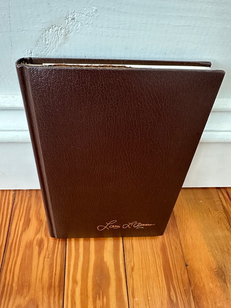 This vintage Bantam leatherette edition of Louis L'Amour's classic Western adventure is a must-have for collectors! The faux leather hardcover gives it a timeless, rugged charm, and even with minor wear and age spots, it adds character. Perfect for fans who appreciate a well-loved book with a bit of history—great stories in a beautifully crafted edition.