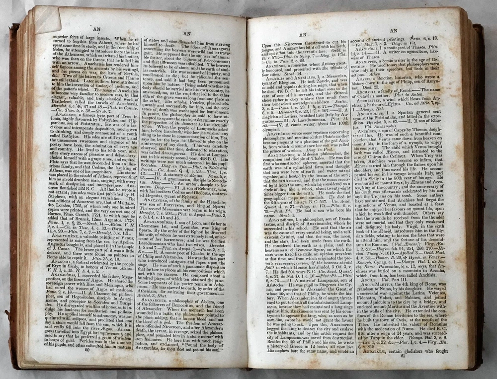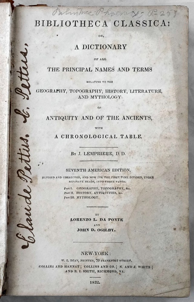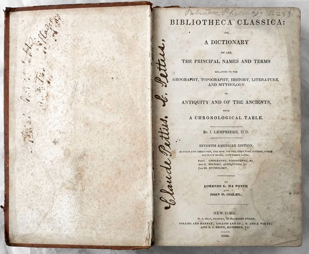 1832 - Bibliotheca Classica by J. Lempriere, D.D. Cover rough but pages tight and all together. Foxing throughout book. Owner's name written in book. Chronological table from creation 4004 BC thru 1453 plus three sections: Part I. Geography, Topography - 316 pages Part II. History, Antiquities - 300 pages Part III. Mythology - 124 pages Great addition of an 193 year old book on antiquities for your library or a nice gift for a friend or relative interested in the subject. Carefully packages and shipped insured. The Bibliotheca Classica or Classical Dictionary containing a full Account of all the Proper Names mentioned in Ancient Authors , is the best-known work of John Lempriere, an English classical scholar. Edited by various later scholars, the dictionary long remained a readable if not absolutely trustworthy reference book in mythology and classical history. Lemprière wished "to give the most accurate and satisfactory account of all the proper names which occur in reading the Classics, and by a judicious collection of anecdotes and historical facts to draw a picture of ancient times, not less instructive than entertaining." The dictionary has been a handbook for teachers, journalists, dramatists and poets for almost 200 years and John Keats is said to have known the book almost by heart. "Far from being just an ordinary dictionary, however, Lemprière's encyclopedic work is full of incidental details and stories which bring the mythical past to life." It is also assumed that the great scholar Richard Valpy helped Lemprière with the dictionary. I can offer a discount on combined shipping if you buy more than one item from my store at the same time. Ask me about it. In addition to selling old books & historic photographic images, I also sell vintage cameras, photo collectables, historic early photography books & literature and other unusual collectables i n my Ebay Store - check it out by clicking on Visit Store. Follow my store as I am always adding more interesting & unique items.