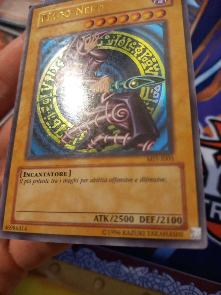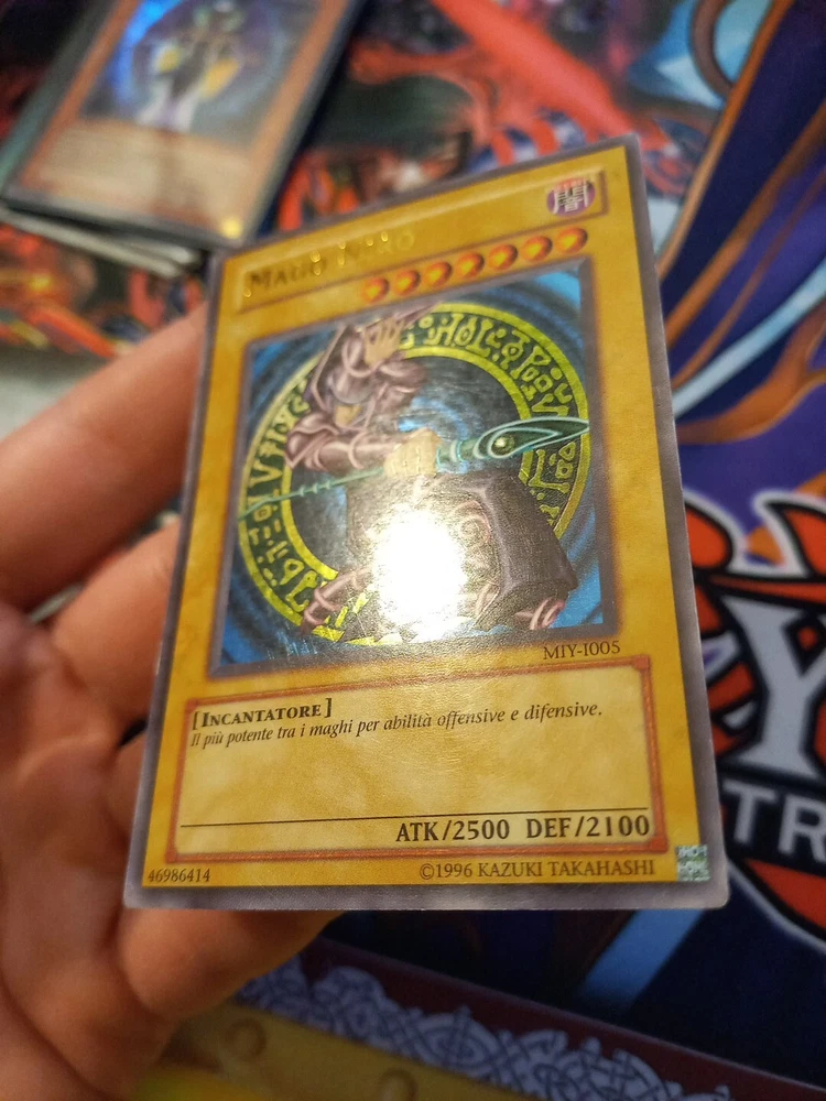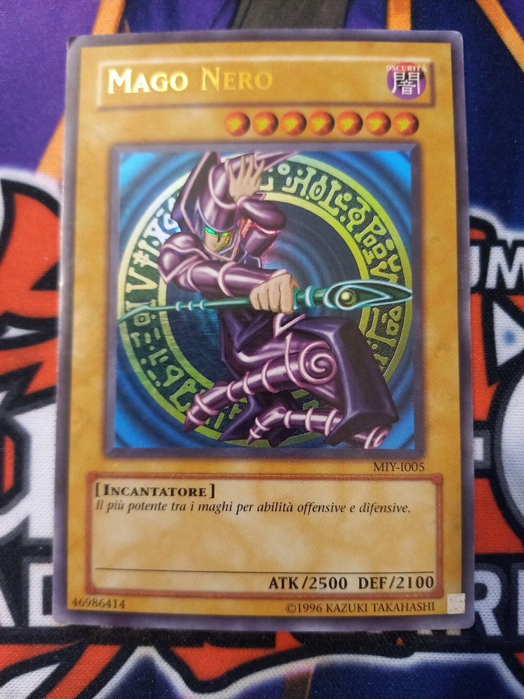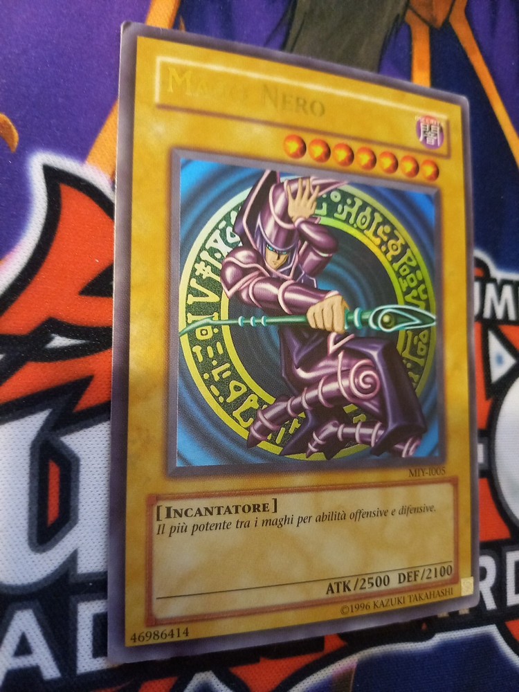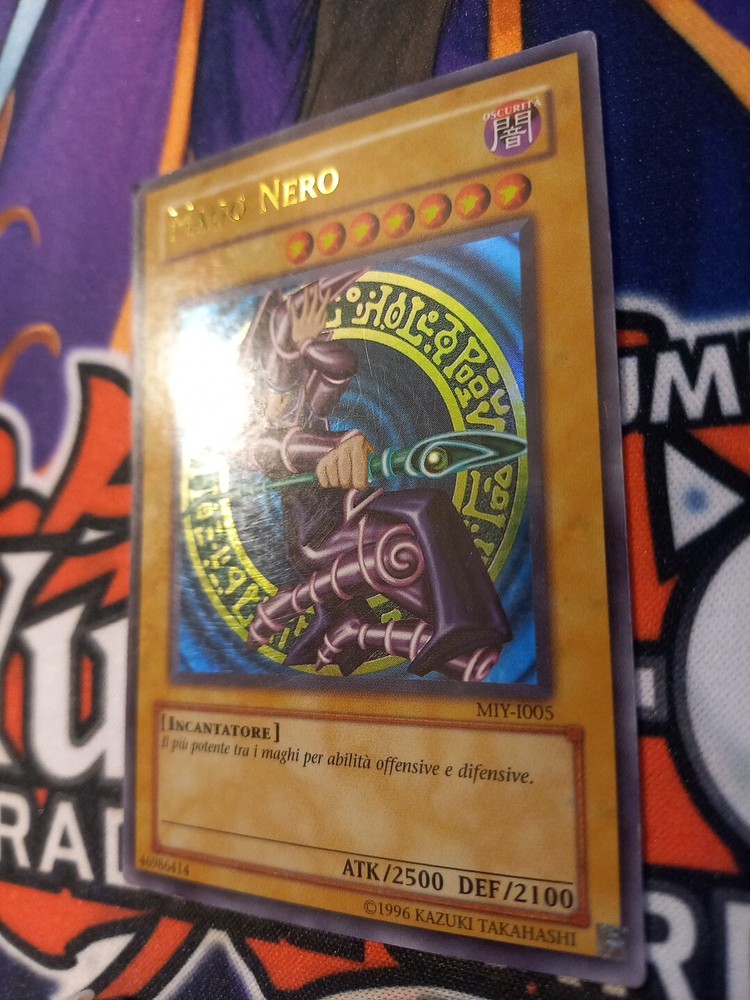 Mago Nero ( Dark Magician) Miy-it005 Ultra Raro Mazzo Yugi Yu-gi-oh!. Carta rappresentativa del gioco stesso, iconica e conosciuta da tutti. Essa è proveniente dal ormai molto vecchio, mazzo introduttivo Yugi, ove al suo interno trovavi le carte usate da Yugi nel cartone animato. Il mazzo uscì nel lontano 2002, e questa era l'unica carta di rarità Ultra rara, nonché rappresentativa dell'intero mazzo,che all'epoca era composto da molti " gialloni" . Si trova in condizioni Excellent, con qualche lieve difetto quale una minuscola pieghetta nell'angolo in alto a sinistra e un due microscopiche pressioni nell'angolo in basso a sinistra e poco sopra il bollino. Esattamente come in foto. Ottimo esemplare da collezione in lingua Italiana ed in seconda edizione, perfetto se si vuole completare il set con tutte le carte del mazzo introduttivo di Yugi ( per il quale possiedo altre carte della stessa edizione di questa , al di fuori di ebay ). Spedizione veloce con posta 1, tracciata alla consegna e sicura. Disponibili molte altre carte sul mio ebay e presto presenti in esso pertanto chiedere se interessati ad altri articoli prima di acquistare in modo da effettuare un'unica spedizione per più acquisti.