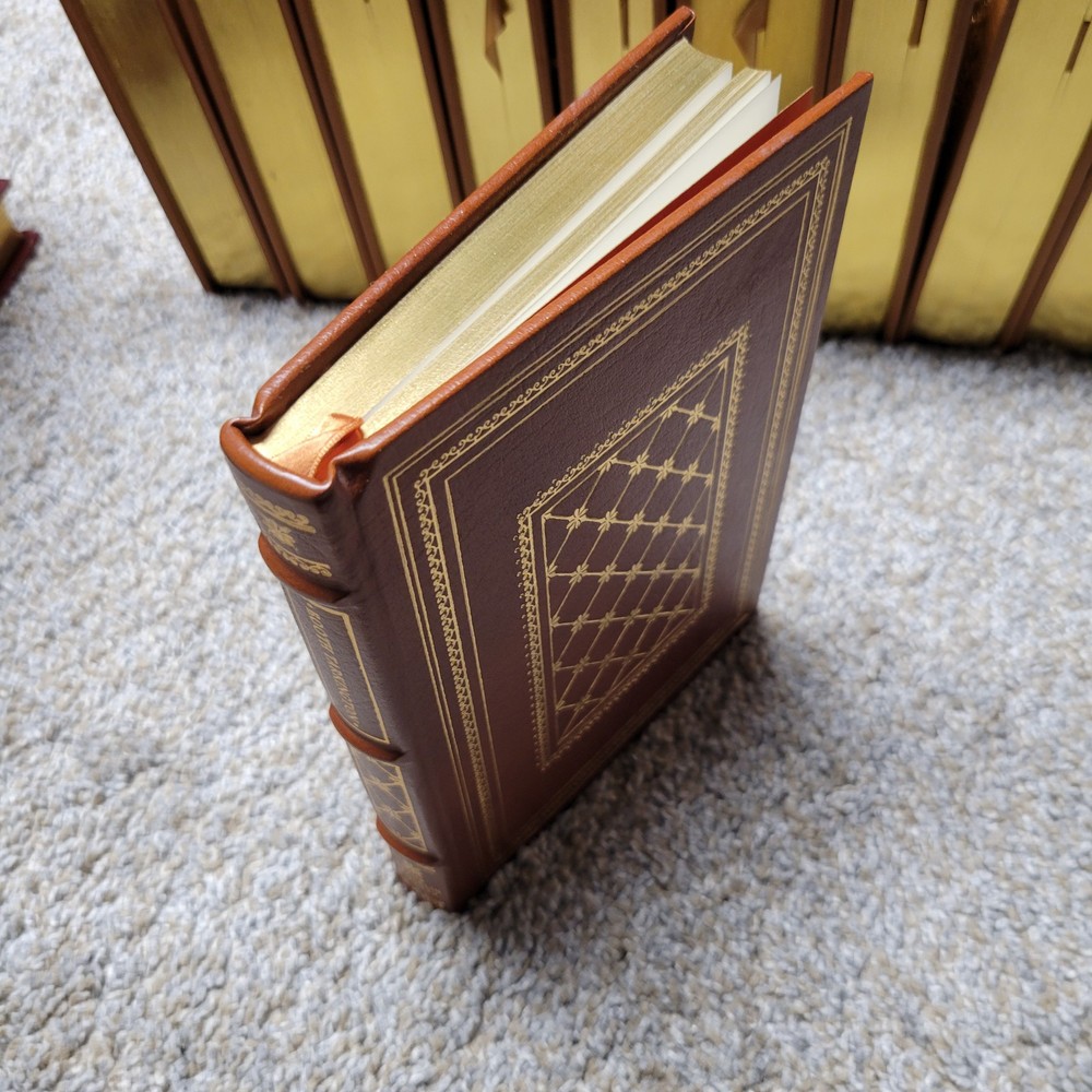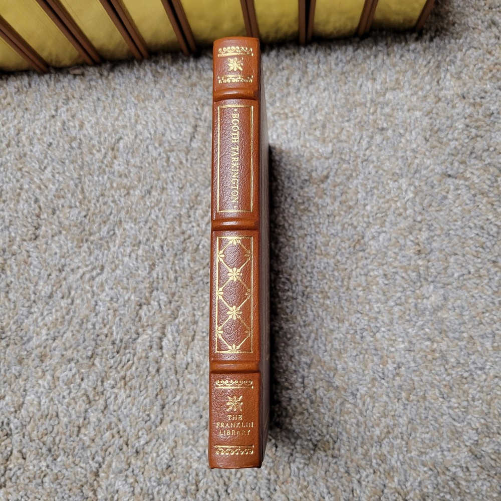 The product is a limited edition leather-bound book titled "Booth Tarkington Stories," published by Franklin Library in 1984. Authored by Booth Tarkington, a prominent American novelist and playwright, the book falls under the topic of literature and the subject of literature & fiction. It is a special collector's item as it is part of the Franklin Library collection, known for its high-quality bindings and exclusive editions. The book is in English, making it a desirable piece for fans of classic literature looking to add a unique and elegant edition to their collection.