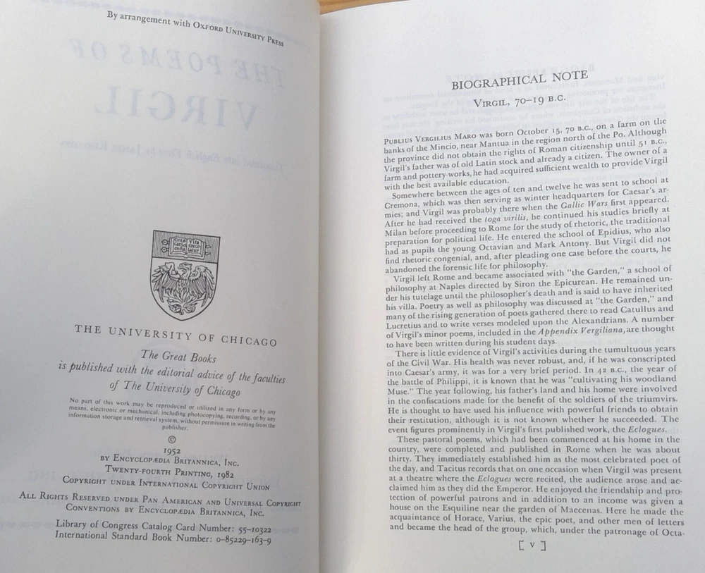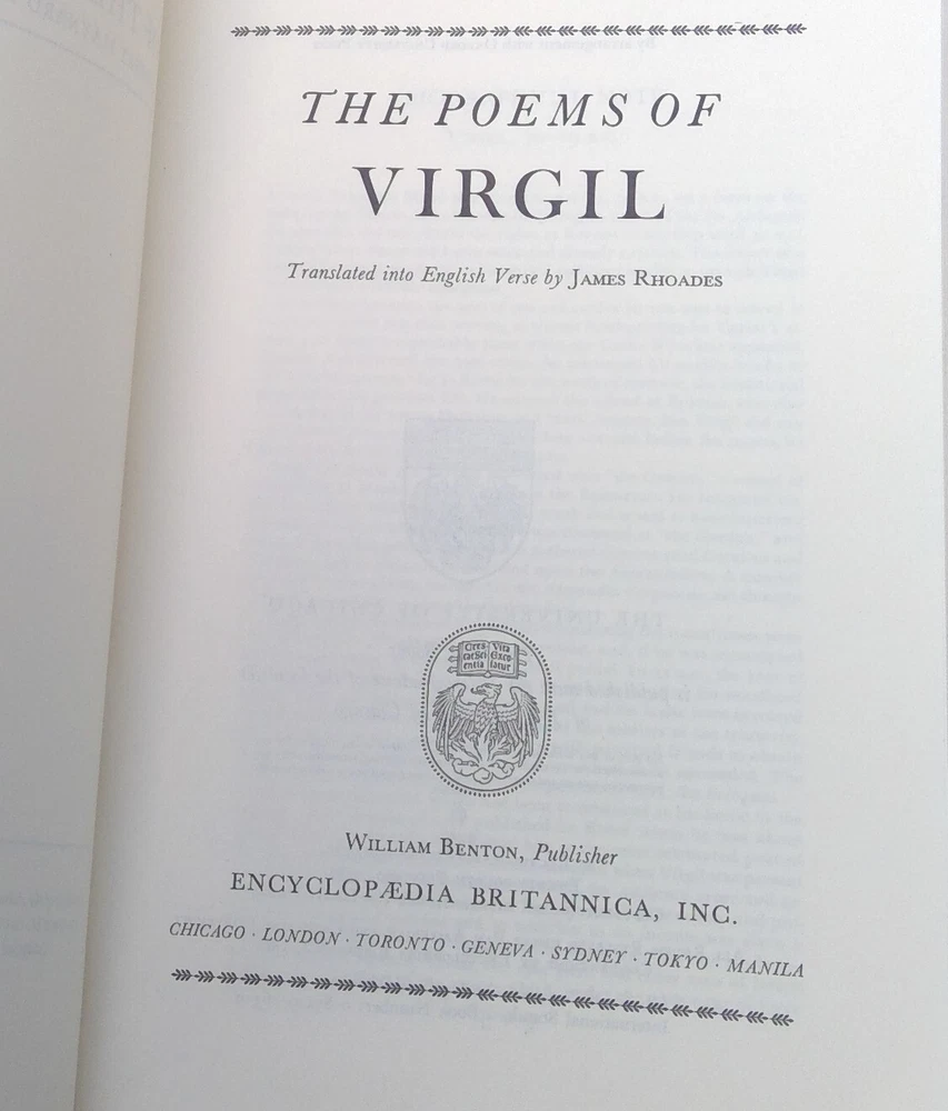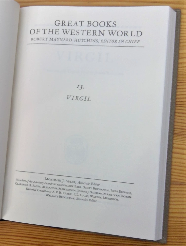 Britannica, 'Great Books of the Western World', 1982, number 13, Virgil, hardcover. Very good pre-owned, vintage condition. Some dust on the exterior. The number of the book written in pencil on the first pages. We do combine shipping. Please email questions. Thank you for your interest. Have a great day!