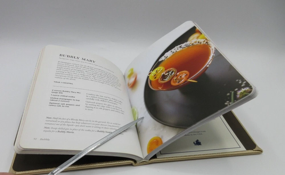 Bound by hand in metallic leather by Graphic Image in NY Cover has a blemish. Bubbly is a collection of more than 60 effortlessly stunning cocktail recipes featuring the most festive bottle behind the bar--champagne With bright, seasonal flavors, simple techniques, and no pretense, author and photographer Colleen Jeffers shares her most irresistible sparkling cocktails, alongside quick-trick tips on topics like buying the right bottle of bubbly, keeping carbonation crisp, scoring cheap vintage glassware, and making simple syrup without a stove. Inside this beautiful book's plush, gold foil cover , recipes include: French 75 --tart, light, crisp, refreshing, and arguably the best known of all vintage champagne cocktails Aperol Spritz --ideal for aperitivo hour Paloma Punch --perfect for serving a crowd Bubbly Mary --a modern brunch classic Margarita Fizz --a deceptively simple and refreshing Holiday Mail --a cheery seasonal favorite And many, many more This book will quickly become your go-to resource for recipes that rely on fresh, easy-to-find ingredients for head turning flavor without an expert's collection of bottles and tools. Reduced from $84.00