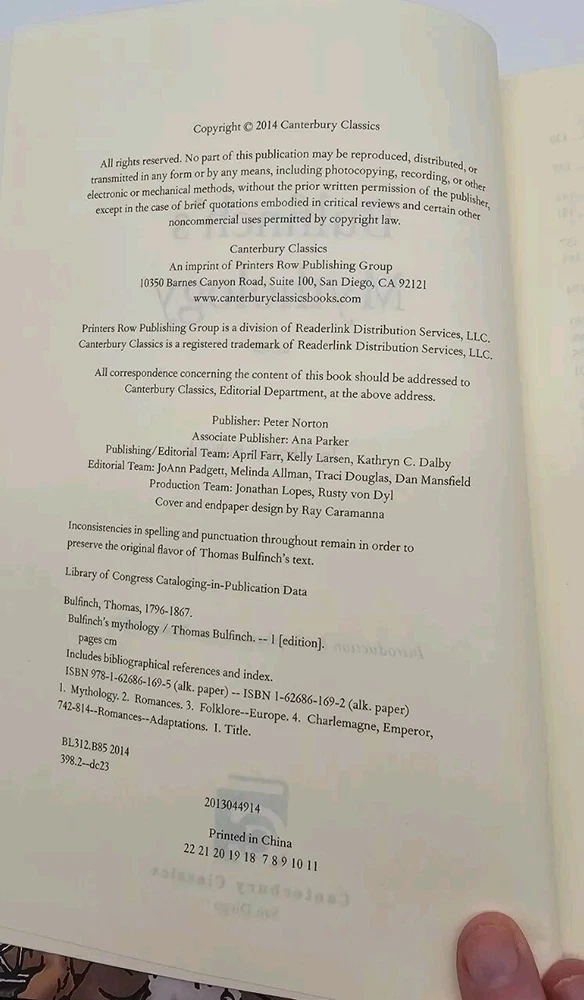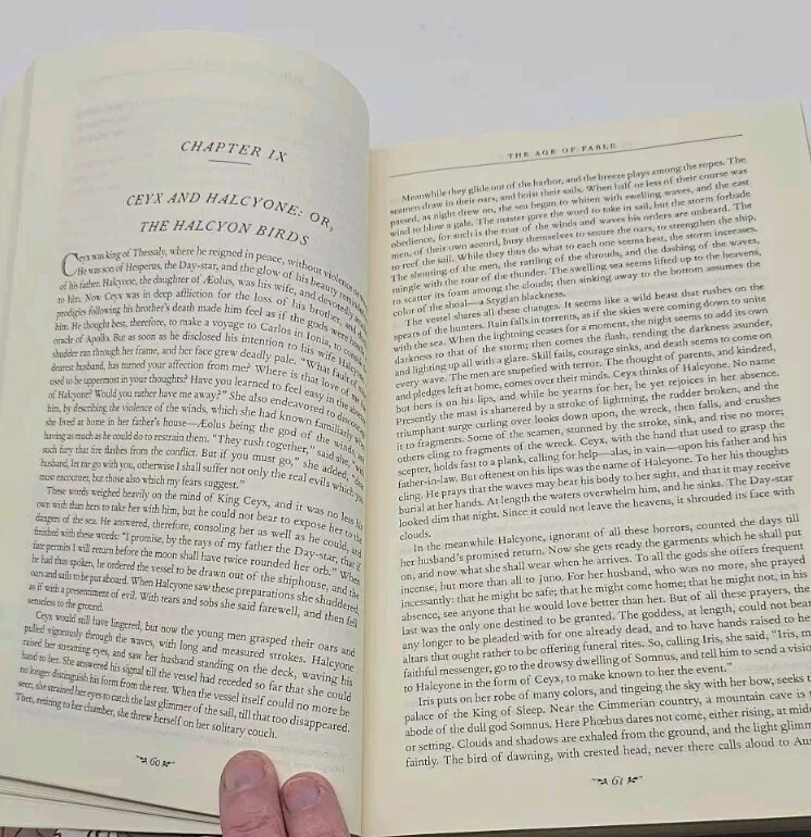 This beautiful copy of Bullfinch's Mythology is printed in 2014 and leather hard cover. It is in mint condition. Binding is very tight. Felt like it was opened first time for pictures only. Clean pages. Gold edged. No marks. Cover is in great condition as well. Happy Shopping!