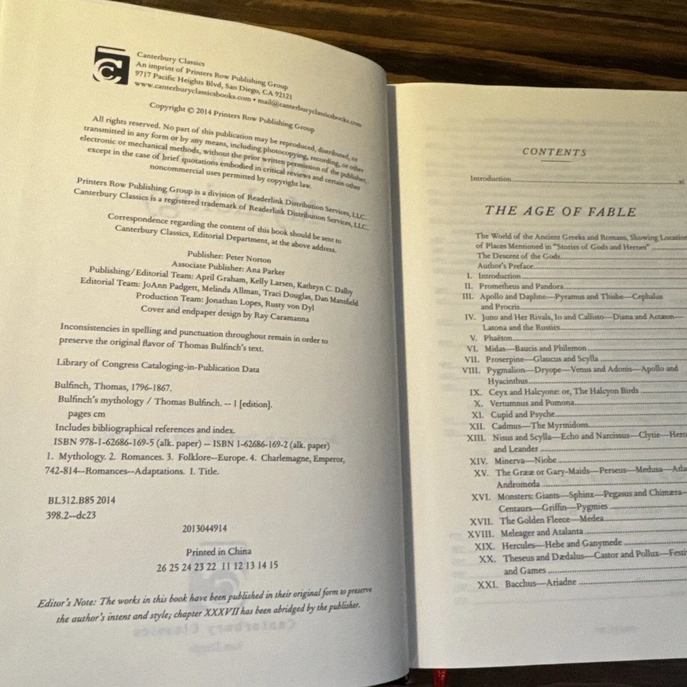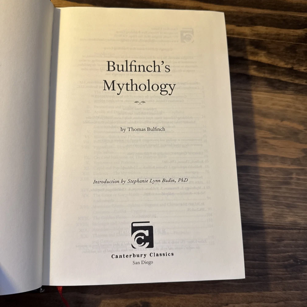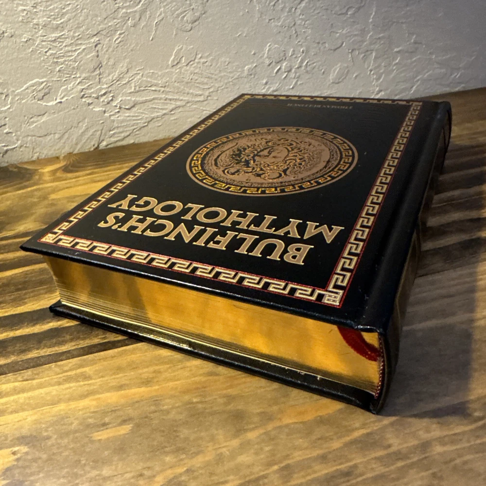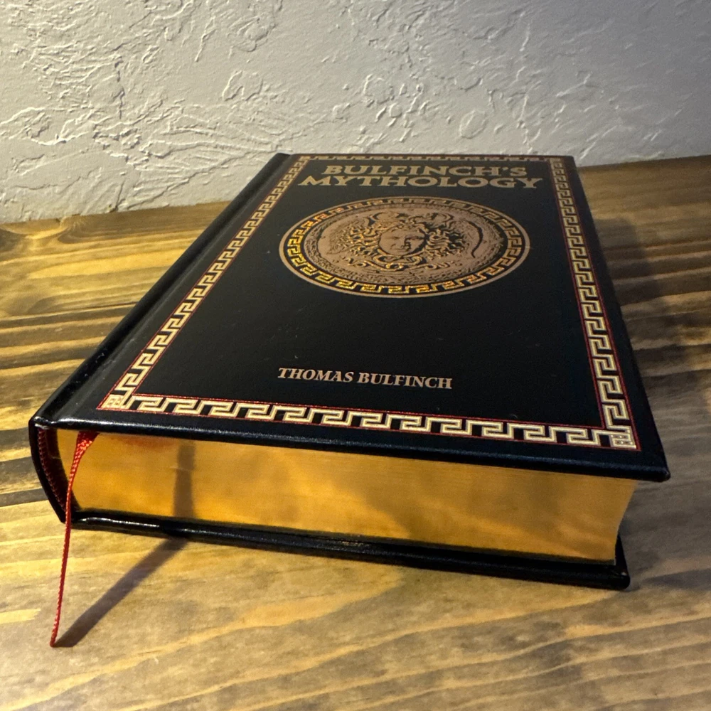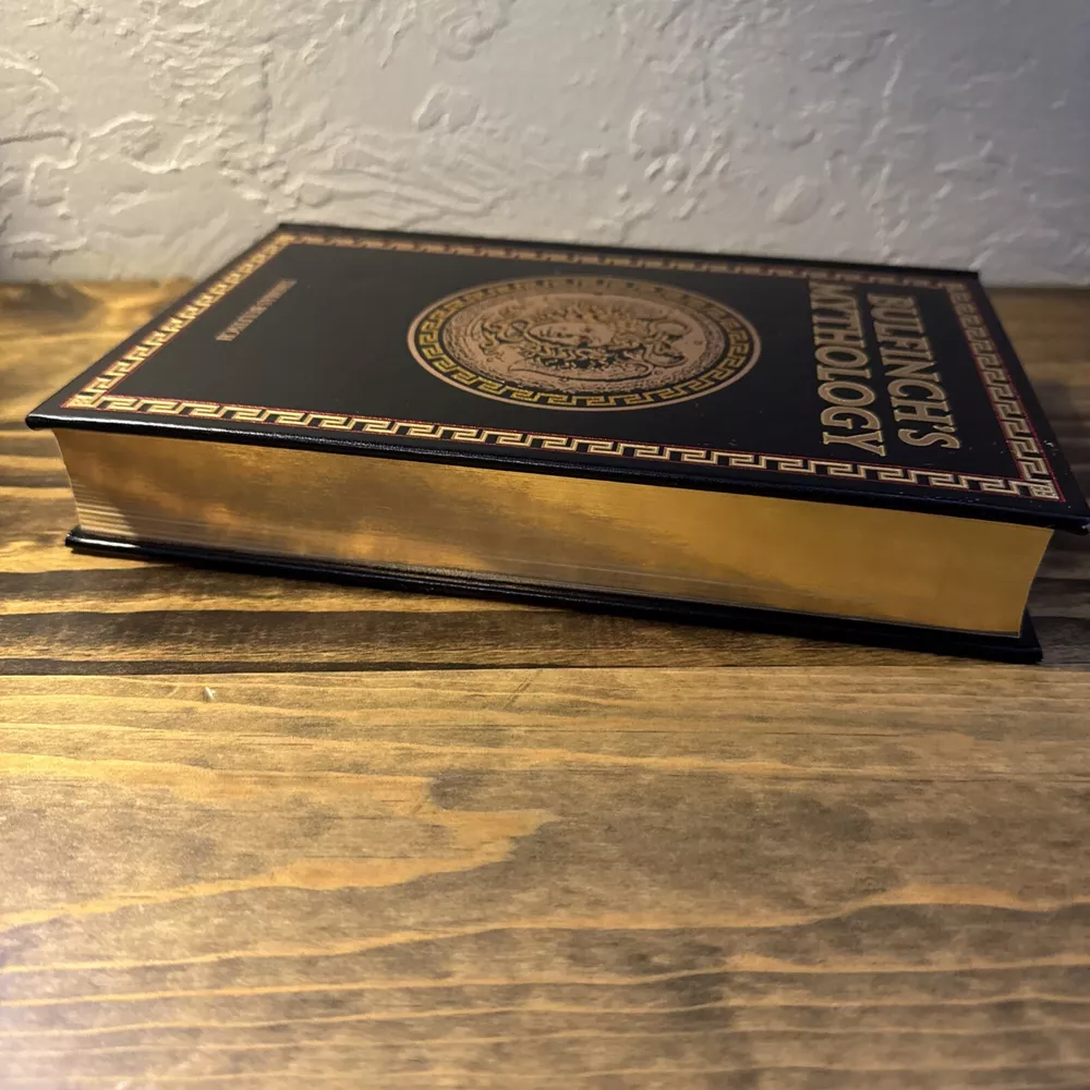 The product is a luxury edition leather-bound hardcover book titled "Bulfinch's Mythology" by Thomas Bulfinch. It was published in 2014 by Bulfinch and has 704 pages. The book is a collection of myths and legends from various cultures, including classics, medieval stories, fairy tales, and folklore. It is intended for young adults and adults interested in history, literature, and social science. No writing or markings throughout. Very good condition. See pictures.
