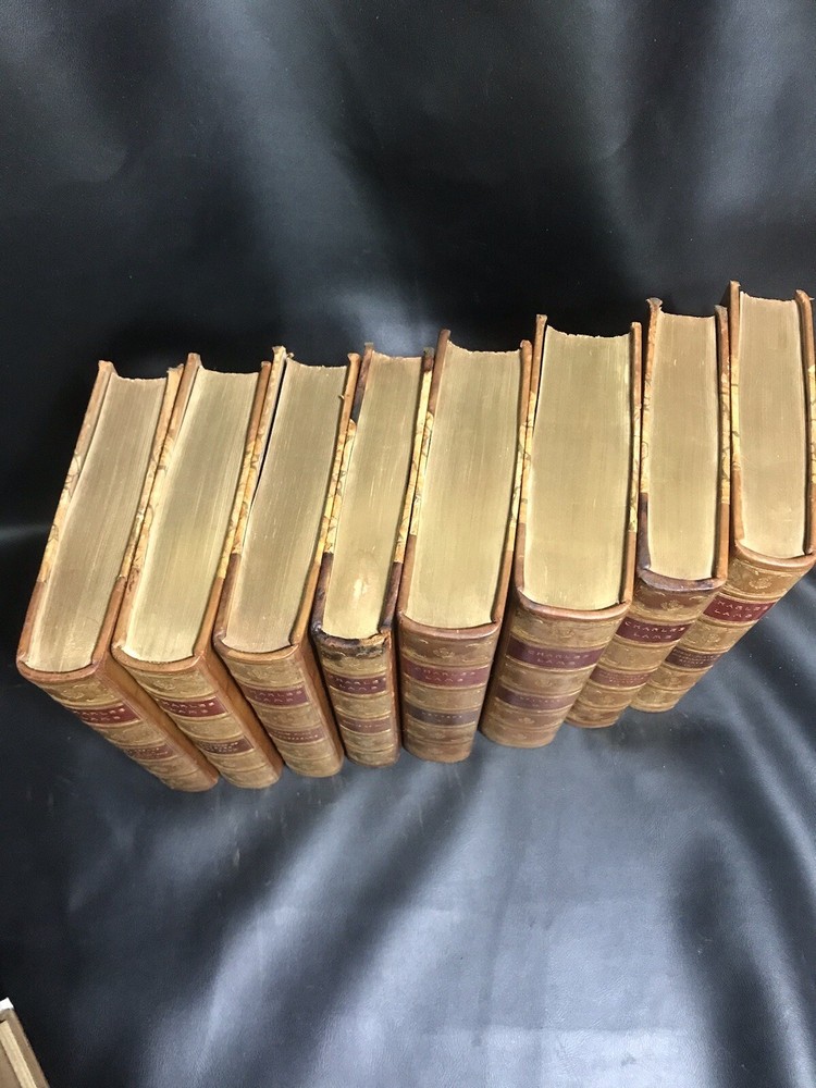 Very good condition. Complete eight volume set, bound in three-quarter polished calf leather over marbled paper, with matching end papers. Pages gilded on the top edge. Illustrated with full page plates protected by tissue paper. Edition De Luxe, Limited to 1,000 copies, but this set is unnumbered. Leather has a few small chips; interiors are mint, and books appear unread. Title pages are quite ornate, and printed in color. Free shipping in the USA!