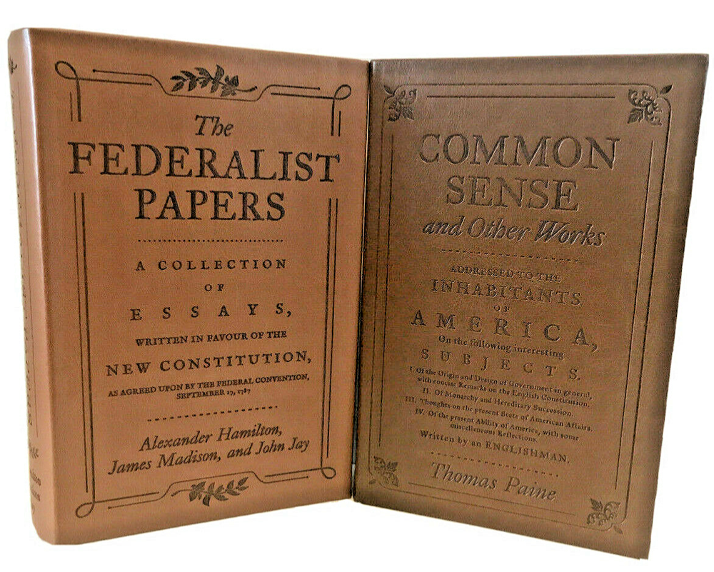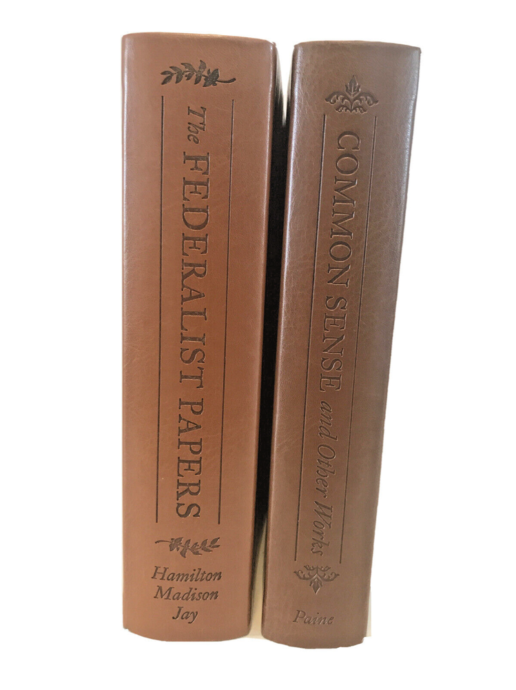 Set of 2 Books THE FEDERALIST PAPERS by Alexander Hamilton, James Madison, John Jay Brand New The Federalist Papers is a collection of political essays, three United States Founding Fathers intelligently and forcefully advocate the ratification of what became this country’s supreme law. Written by the iconic American statesman, Alexander Hamilton, the original US chief justice, John Jay, and “Father of the Constitution”, James Madison, this compilation of eighty-five articles explains and defends the ideals behind the highest form of law in the United States . These essays were published anonymously in New York newspapers in 1787 and 1788, and they foresaw many of the headline-grabbing issues surrounding impeachment , corruption , bureaucracy , and regulation that we read about today. Hailed by Thomas Jefferson as the best commentary ever written on the principles of government, The Federalist Papers is now available in an elegantly designed edition with an elastic closure and a new introduction. Revolutionary classics of political philosophy , these articles are essential reading for students , lawyers , politicians , and anyone with an interest in the formation of societies. The beautiful cover has a rustic look that adds to the character of the book. COMMON SENSE and OTHER WORKS by Thomas Paine Brand New When Thomas Paine published his pamphlet Common Sense over the course of 1775 and 1776 it helped to galvanize the colonists to demand egalitarian government and separation from Great Britain. A bestseller in its day, it is recognized as one of the most important historical documents in the run up to the American Revolution. This volume contains not only the full text of Common Sense, but also the full text of Rights of Man, Paine’s defense of the French Revolution, and the first five pamphlets in his American Crisis series. This special edition features an elegantly designed rustic look cover and a durable flexible binding. It is an indispensable addition to any home history library. Send these book as a gift! We ship these items in gift quality condition with no price stickers or other markings. Buy with confidence from an established seller - we have over 20 years of eBay sales experience and more than 24,000 ratings! Shipped from a smoke-free, temperature controlled environment To see more great items and Value Packs at terrific prices, please visit our ebay store