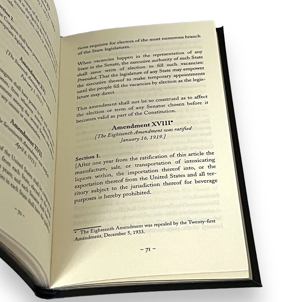 It features a durable bonded-leather binding and distinctive gilt edging. Elegantly designed, The Constitution of the United States of America with the Declaration of Independence puts indispensible documents of America's heritage in the palm of your hand. This portable, pocket-sized volume includes the full text of the Declaration of Independence, the Constitution of the United States of America, and the twenty-seven amendments to the Constitution. It also contains the Articles of Confederation, a chronology of the adoption and ratification of all of these documents, an index to the Constitution and the amendments, and an introduction by Professor R. R. Bernstein. Page Count- 110 Hardcover Leather Editions Dimension- 4 H x 7.1 W x 0.5 D