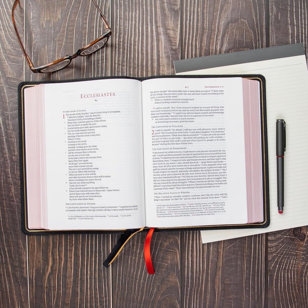 This Bible is absolutely stunning—the premium goatskin leather feels luxurious and durable. The single-column layout and wide margins make reading and note-taking effortless. The text is crisp and easy to follow, perfect for deep study or devotional reading. It’s a high-quality, beautifully crafted Bible that will last for years. Highly recommend for anyone who appreciates both elegance and functionality in their Scripture reading.