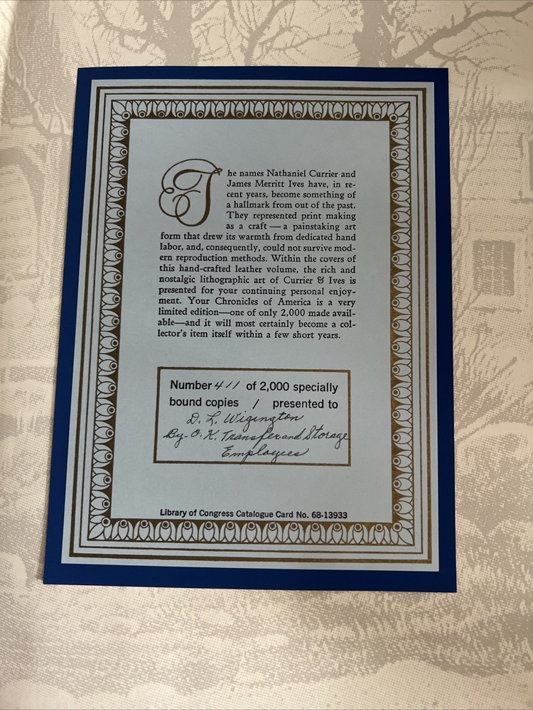 CURRIER & IVES CHRONICLES OF AMERICA LIMITED EDITION 2,000 COPIES LEATHER. Shipped with USPS Media Mail....