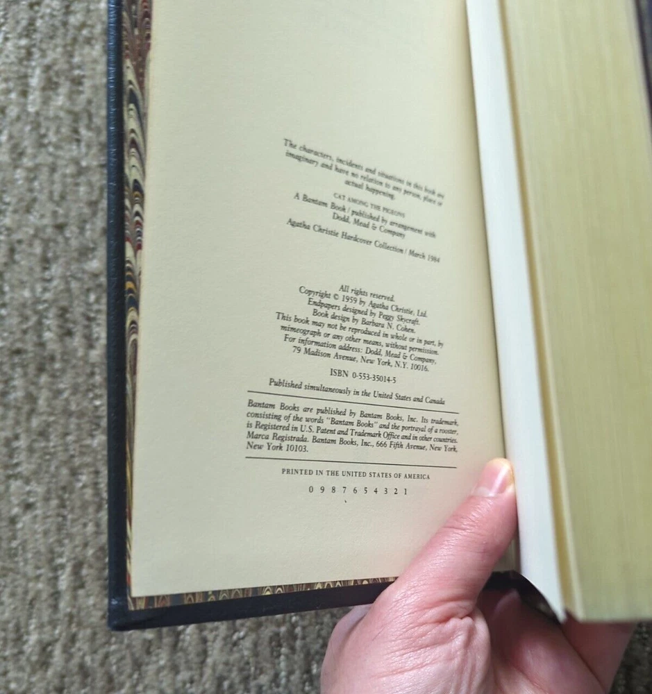 This deluxe leather edition of Agatha Christie's Cat Among the Pigeons is a rare find for any collector of antiquarian and collectible books. The first edition of this mystery thriller is bound in high-quality leather and features special attributes that make it a true gem. The English-language book was published by Bantam and is part of Agatha Christie's Mystery Collection. The topic of the book is centered around mystery and thriller, making it a great addition to any literature and fiction collection.