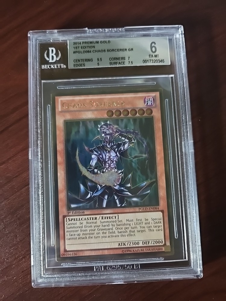Elevate your Yu-Gi-Oh! TCG collection with the Chaos Sorcerer card from the Premium Gold-1st Edition set. As a pivotal effect-type card, Chaos Sorcerer, numbered PGLD-EN084, features an impressive 2300 attack power and a sturdy 2000 defense toughness, making it a formidable addition to any deck. The card showcases the Dark attribute, complementing its spellcaster creature/monster type, and comes in the sought-after Gold Rare rarity. The Chaos Sorcerer card is produced by Konami and is presented in English. Its 1st Edition status adds a layer of collectibility appeal, especially for players and collectors alike who value the history and evolution of the game. Whether for competitive play or as a treasured piece in your collection, this card brings a unique blend of strategy and nostalgia to the table.