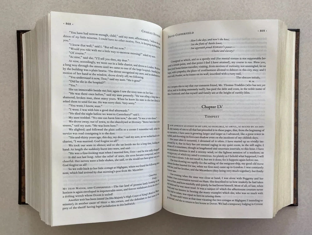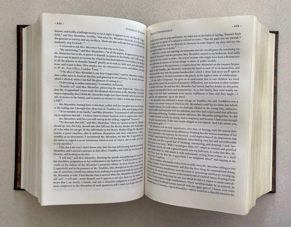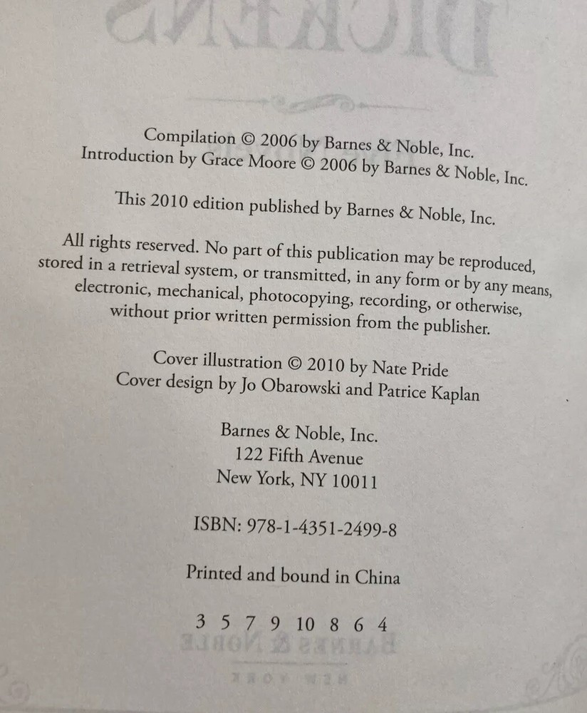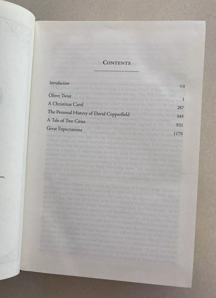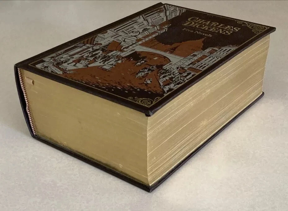Charles Dickens: Five Novels, a 2010 Barnes & Noble deluxe edition leather hardcover book with colorful impressions. Book is in very good condition. Covers and spine are solid and tight. Some light handling wear to the covers. Pages are clean with no marks or writing found inside. Book edges are gilt; some shelving scuffs and marks to the gold gilt. Book includes a ribbon marker (intact). See photos. Shipped with USPS Media Mail. Includes: Oliver Twist, A Christmas Carol, The Personal History of David Copperfield, A Tale of Two Cities, Great Expectations.