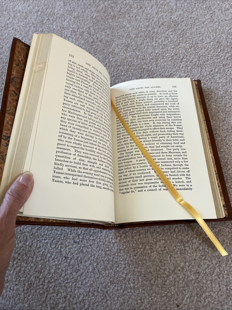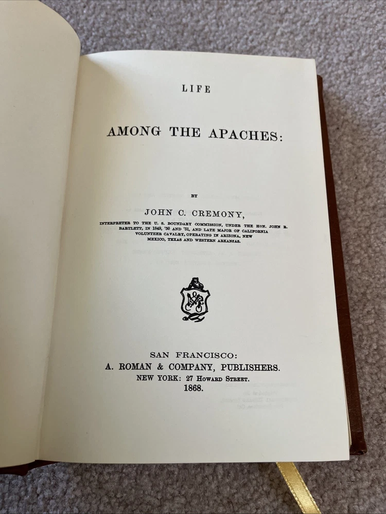 Delve into the captivating narrative of "Life Among the Apaches" by John C. Cremony, a vintage treasure reprinted in 1981 by Time-Life Books. This hardcover edition, bound in supple leather, embodies the essence of a classic tale with modern craftsmanship. The book offers an engaging read in the English language, taking you on an unforgettable journey through the storied past of the Apache tribe. As a noteworthy collectible, this leather-bound edition is a testament to the enduring allure of vintage literature. It stands as a fine addition to any library, appealing to enthusiasts of historical accounts and admirers of finely crafted books alike. Enhance your collection with this piece that merges the nostalgia of yesteryears with the quality of a first edition.