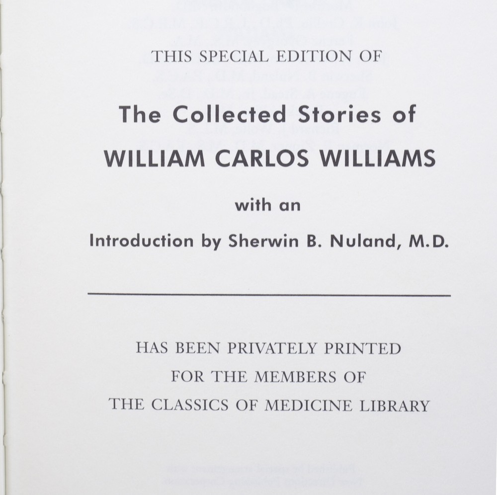 20241222X746 Gryphon Editions The Classics of Medicine Library Special Edition ""The Collected Stories of William Carlos Williams" Fine Leather Bound Hardcover with only minimal signs of Handling Weight: 3 lbs Dimensions 8 1/4" × 5 1/2" × 1 1/2" About the Publisher: For over 40 years Gryphon Editions has been publishing facsimile reproductions of the classic books in Law, Medicine, Science, History and Political Thought. Each volume is luxuriously bound in the best quality leather – never synthetic material.