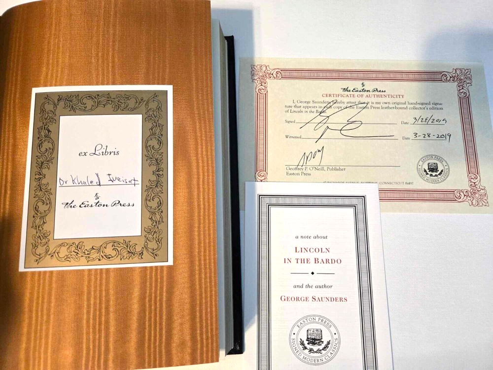 This collectable book, "Lincoln In The Bardo" is a must-have for any history enthusiast. The signed edition comes with a certificate, making it a valuable addition to any collection. The binding is made of high-quality leather, ensuring its durability for years to come. The author, Saunders book in great condition.
