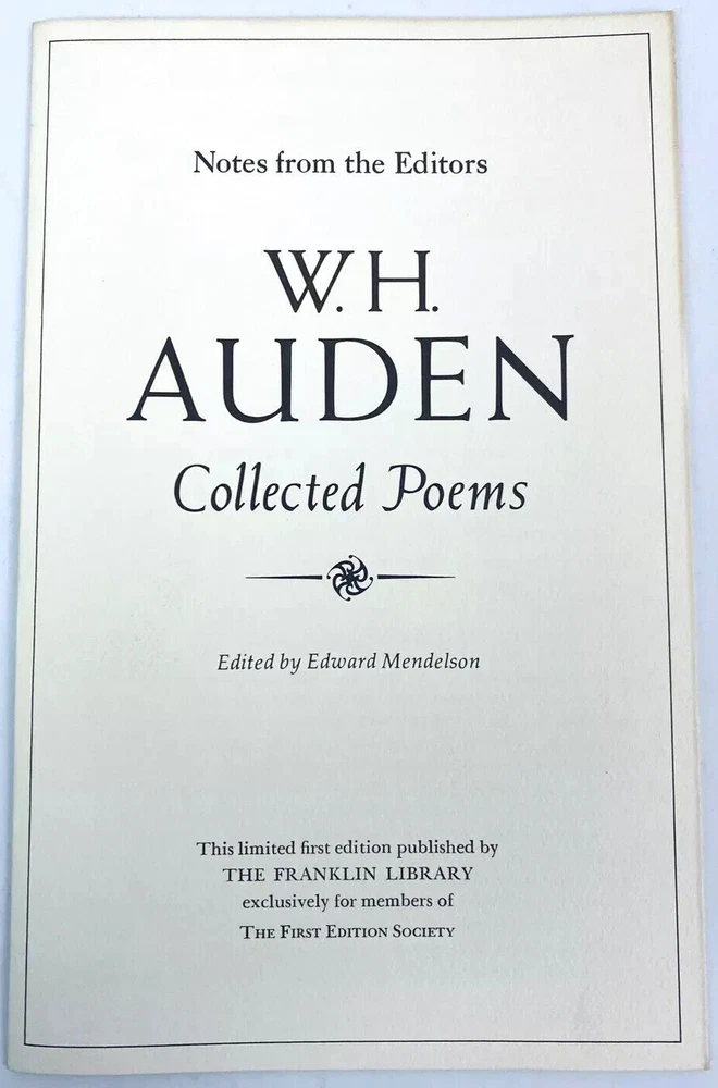 Collected Poems of W. H. Auden, limited edition, Franklin Library, First Edition Society book, in excellent condition with notes from the editor. The proceeds of the sale of this book will directly benefit the Lindenwold Library in Lindenwold , NJ .