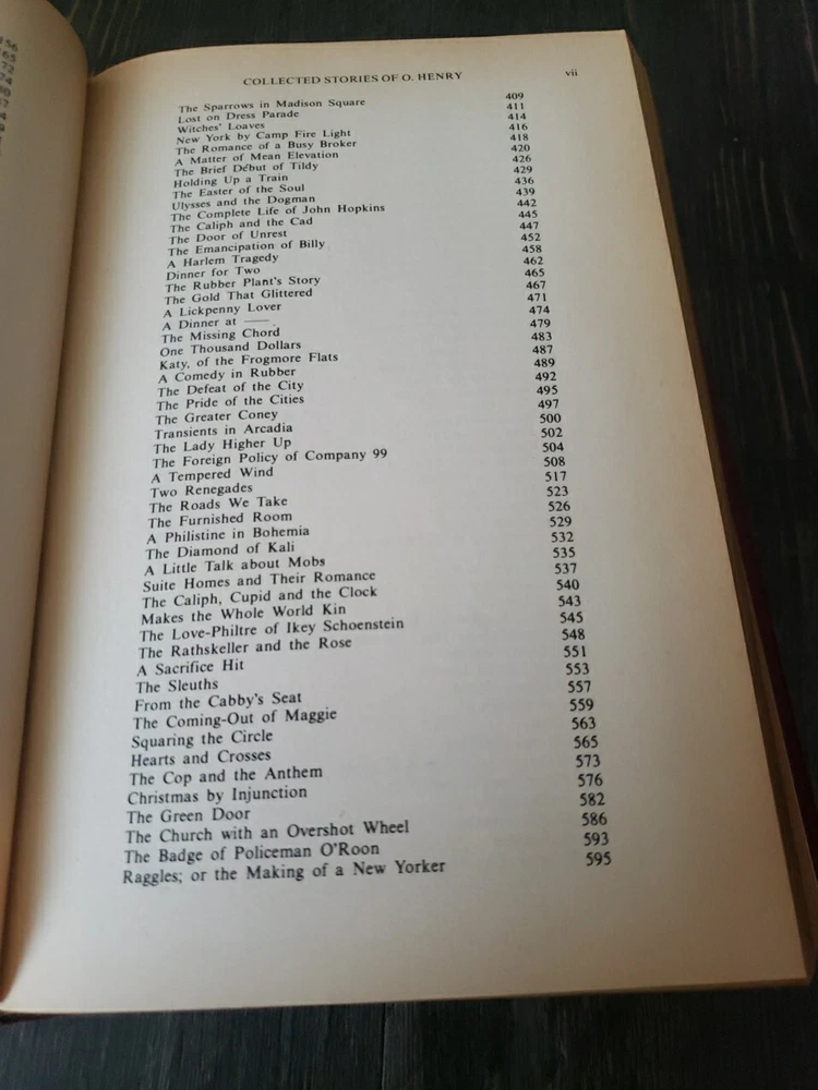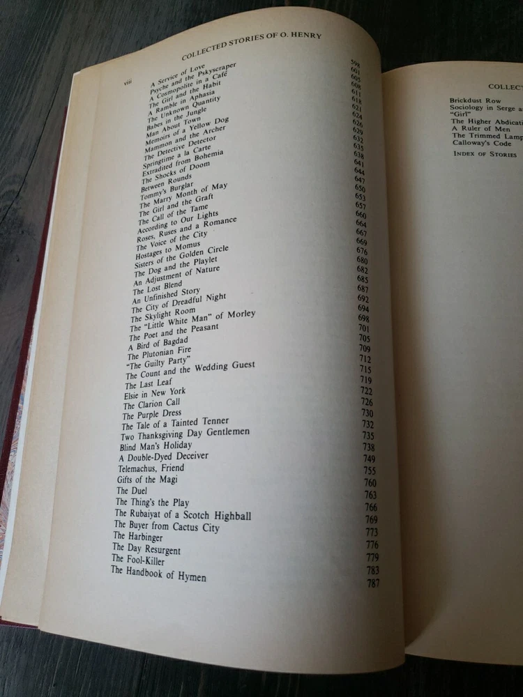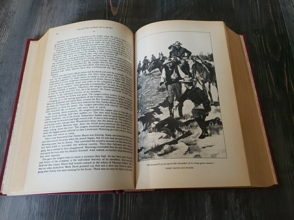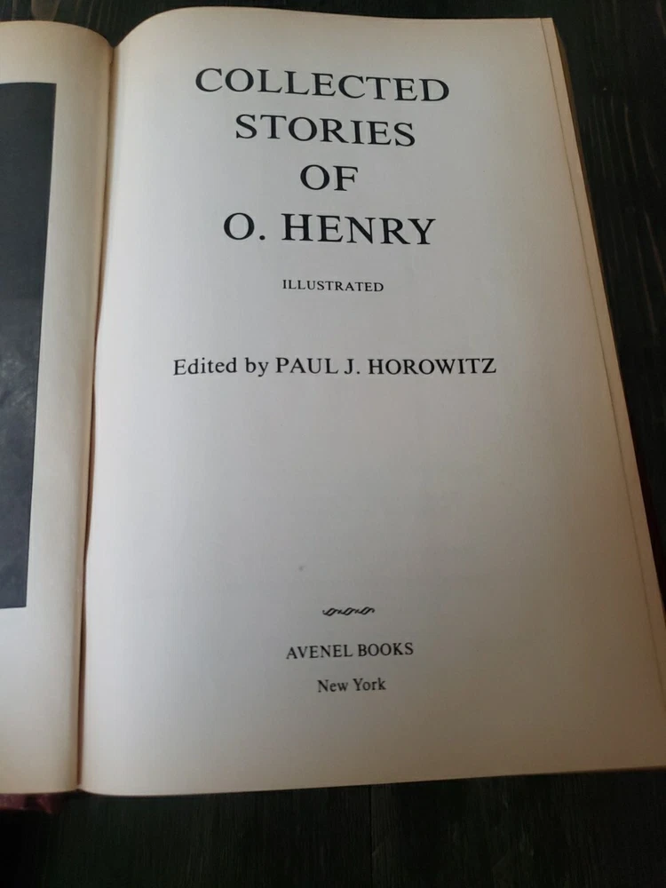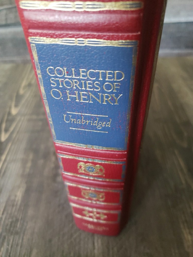 This edition of *Collected Stories of O. Henry* is a treasure! The book has a beautiful cover—whether real or faux leather, it looks elegant. It's in solid condition with minor wear, personalized inside, and a few dog-eared pages, but the stories remain crisp and unmarked. Pages show gentle yellowing, which just adds to its vintage charm. Perfect for lovers of classic literature—O. Henry’s wit and twists shine on every page. A fantastic addition to any bookshelf!