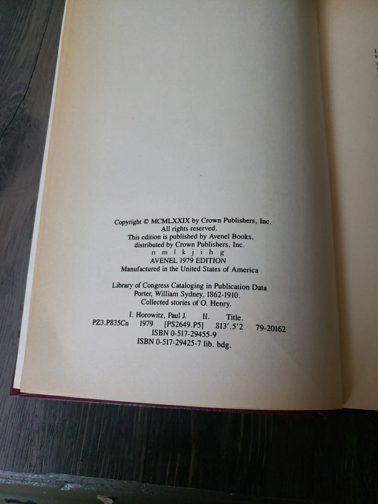 Is it real leather? Other listings of this item purport the cover to be leather, but I was unable to confirm nor discredit this claim. I personally would guess that it is in fact 'faux leather'. Either way it is a lovely cover. The book is in great shape but is personalized in the front page and has some dog-eared pages around p362-369. Light wear on covers and corners, pages have begun to yellow with age but are all intact and unmarked. Here's the AI description: "Discover the timeless charm of O. Henry's classic short stories with the 'Collected Stories of O. Henry' published by Avenel Books in 1979. This vintage hardcover edition features a luxurious leather bound cover, making it a perfect addition to any book lover's collection. With 843 pages of captivating tales, this book is ideal for adults looking to immerse themselves in the masterful storytelling of one of America's most beloved authors. This item, weighing 39 oz, is a true gem for fans of non-classifiable fiction and short stories."