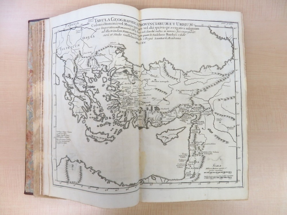 Item Description Anselmo Banduri, Numismata imperatorum Romanorum (set of 2 volumes), 1718, Collection of Coins of the Ancient Roman Empire - Byzantine Empire (coins) Byzantine Art. Anselmo Banduri (Ragusa di Dalmazia, 1671-Parigi, 4 gennaio 1743), Italian archaeologist born in 1671, published in 1718 a two-volume collection of ancient Roman and Byzantine (Eastern Roman) coins. Numismata imperatorum Romanorum a Trajano Decio ad palaeologos Augustos" (Numismatic Coins of the Byzantine Empire), first edition, first printing. Beautiful copperplate engraved plates of coins from various periods. The book is solidly bound in leather with gilt lettering, red ink on three sides, and marbled paper on the front and rear endpapers. There are no missing pages and no pages are missing. Size : 256*394mm No missing pages ([52] 544 [106], [12] 777 [39] p.). Latin notation. Condition: Very Good Condition. With old copperplate library stamps in several places, and a stain on about the first 10 pages of the lower volume. Otherwise, the book is clean and in good condition. We also have other Art and Antique item , so please take a look. I also accept bundles.Thank you. Shipping Worldwide Flat Rate Expedited Shipping ...3~8 days Cost : 0.00 Other Term For U.S. buyers: : Due to recent customs regulation changes, import duties and fees for items under USD 2500 will NOT be charged on delivery. : These costs are prepaid by the seller under a DDP system. : You will not receive a separate COD request for customs fees or duties. For buyers in Europe and all other countries: Import duties, taxes, and charges are still collected by your local customs office or shipping carrier upon delivery. Please check with your country's customs office to determine what these additional costs will be prior to bidding/buying. These charges are normally collected by the delivering freight (shipping) company or when you pick the item up - do not confuse them for additional shipping charges. "We do our best to ensure a smooth and worry-free delivery for all our international customers." Track Page Views With Auctiva's Counter