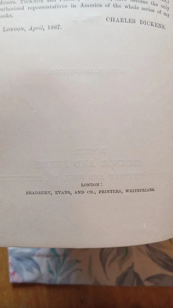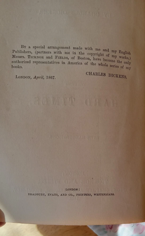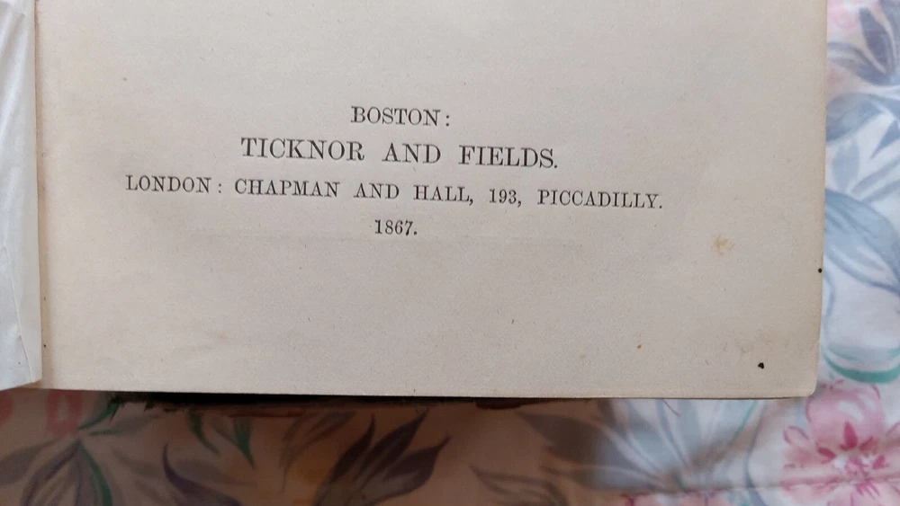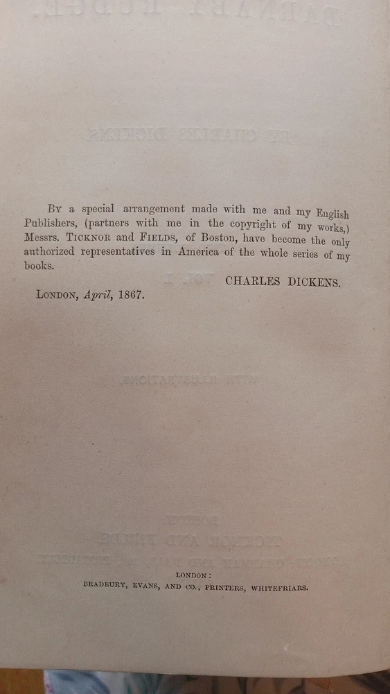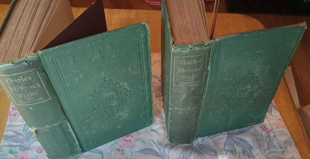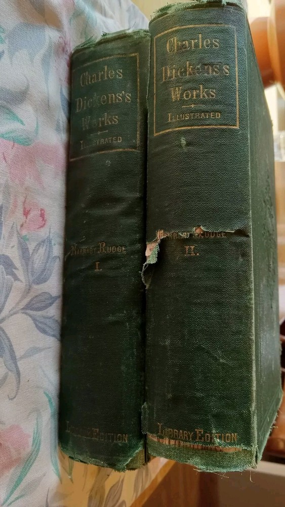 Ticknor and Fields of Boston were the first American publishers/ distributors given permission by Dickens and his English book partners to distribute his works in America. This is one of the first collections of Dickens works ever published -1867! This lot includes Barnaby Rudge in 2 volumes...this 2 volume set makes up volume 9 of a larger set, the rest of which is unavailable. This very early copy of Barnaby Rudge will come as shown.