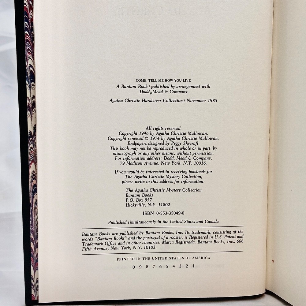 Agatha Christie Mystery Collection Bantam Details: The Agatha Christie Mystery Collection Title: Come, Tell How You Live Author: Agatha Christie Publisher: Bantam Books Publication Date: November 1985 ISBN: 0-553-350049-8 Binding: Hardcover - Faux Leather Pages: 188 Condition: Book: Very Fine - Book in Excellent Condition Please refer to photos for your assessment Review photos closely using the zoom tool