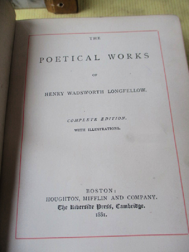 cr112. Pub'd. Houghton Mifflin, Boston, 1881. Squarish 16mo, 6 3/4" tall, 5" wide, 434 pages with notes. Full leather covers and spine with replaced leather patch. All edges gilded. Owner name on first front end paper. Good condition. PLEASE NOTE: This book has rudimentary repairs......not professional, but with enough skill to make it serviceable. Do not hesitate to e-mail with any questions. As Always, Satisfaction Guaranteed! I expect to receive payment within 10 days, unless we have made other arrangements. Shipping will be USPS Media mail or Priority, if requested. I'm glad to combine multiple purchases in order to minimize shipping costs. I WILL SHIP INTERNATIONALLY, and I try to be as economical as possible with the shipping costs. RETURN POLICY: Satisfaction Guaranteed! Track Page Views With Auctiva's FREE Counter