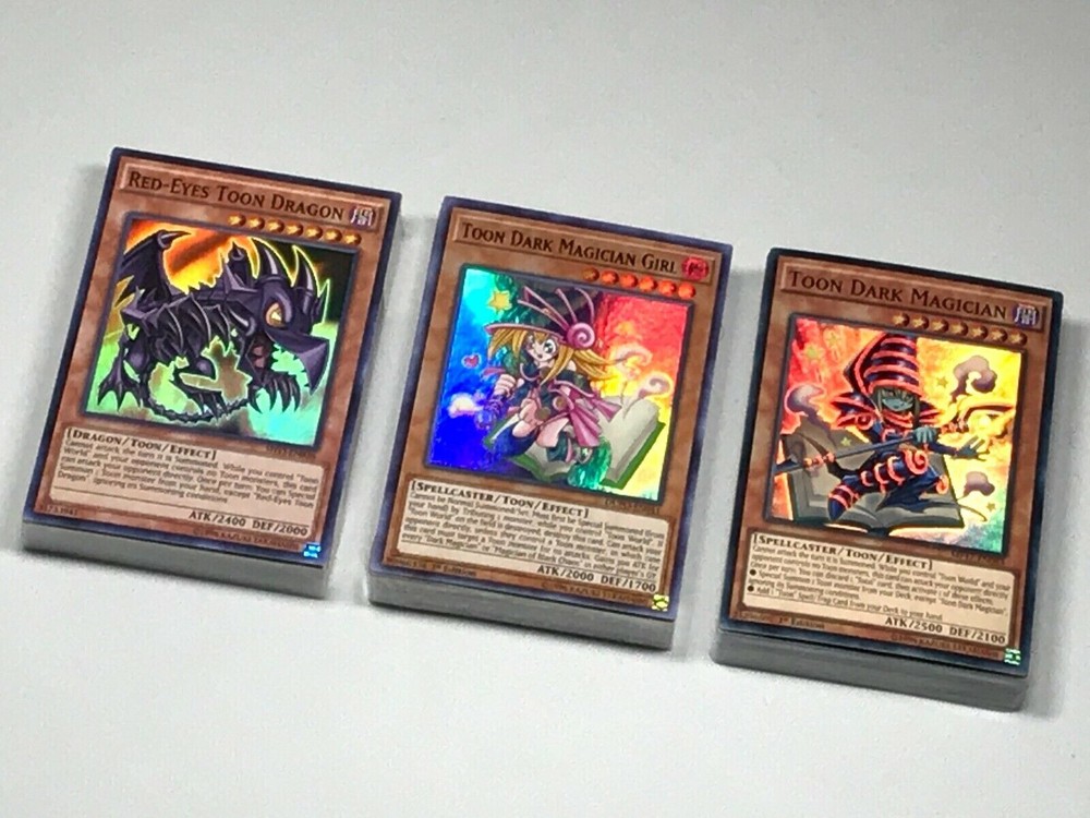 Hello all I am a New Ebay Seller!!! I am a Female Yugioh & Magic Collector!!! Happy Bidding!!! A bonus for ordering you will also Get a Free Holo Card from my collection. It maybe Super Rare, Ultra Rare, or SECRET Rare!!! Picture may have been edited due to Inventory Changes Please read description Below Item for sale is: - Complete 40 Card Pegasus's Deck 18 Monster Cards: 1x Toon Dark Magician Girl 1x Toon Buster Blader 3x Illusionist Faceless Mage 3x Toon Alligator 2x Toon Summoned Skull 1x Toon Gemini Elf 1x Toon Barrel Dragon 2x Rogue Doll 2x Relinquished 11 Spell Cards: 2x Toon World (Rare) 1x Black Illusion Ritual 3x Dark Eruption 1x Sword of Dark Destruction 3x Forbidden Dress 1x Brain Control 11 Trap Cards: 3x Sour Scheduling - Red Vinegar Vamoos 3x Fuhma Wave 3x Paleozoic Canadia 1x Shield Spear 1x Toon Defense