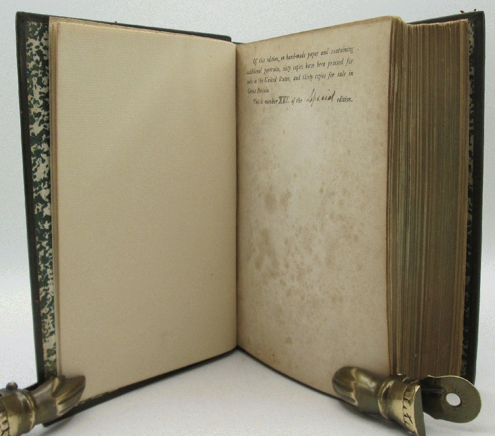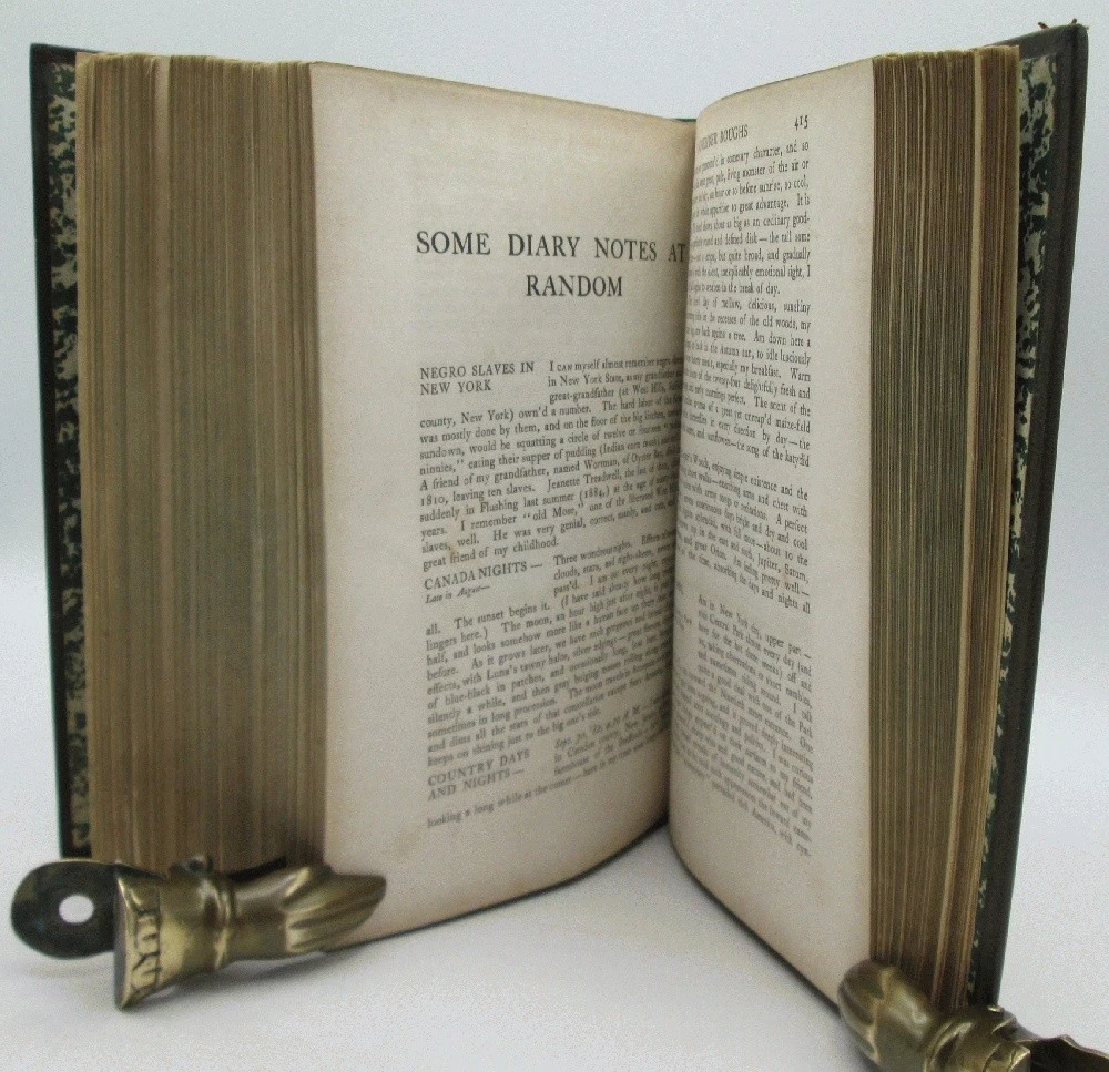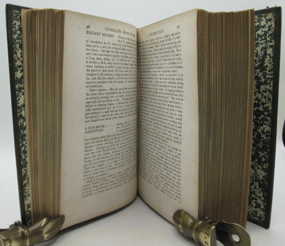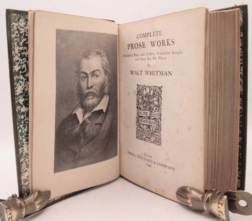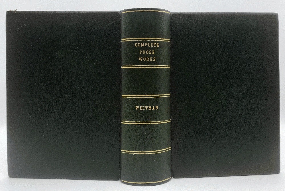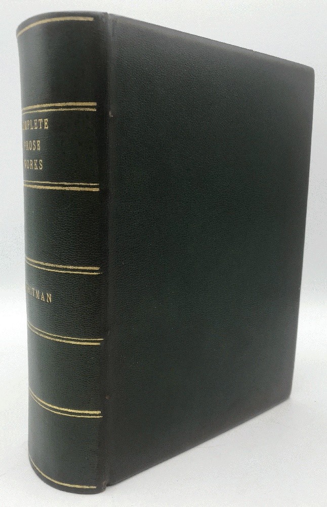 Ivy Ridge Books presents ... Complete Prose Works: Specimen Days And Collect, November Boughs And Good Bye My Fancy by Walt Whitman Author: Walt Whitman Publisher: Small, Maynard & Company Release Date: 1898 Seller Category: literature & fiction Qty Available: 1 Condition: Collectible: Very Good Sku: 10474 Notes: #14 of 90 special edition printed on hand-made paper with two additional illustrations. Beautifully bound in green leather, there are a few small nicks on the edges, edges have darkened to brown on front and rear boards and the spine. Foxing and damp stains on the interior. All orders packed with care, dust jackets protected by Brodart sleeve, independent bookseller since 2011 Don't forget to check out other great deals in our eBay Store!!