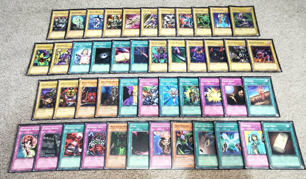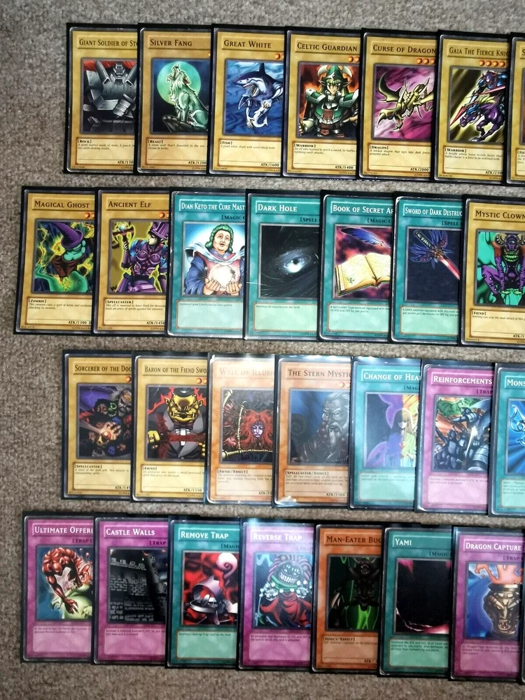 Home New Arrivals Feedback Contact Complete Starter Deck Yugi: Dark Magician/Gaia/Dragon/Elf/Clown etc.. Item Description Good day Sir/Madam! The card(s) you are viewing now will be in Varying condition Complete Yugi Starter Deck :) All cards are in different conditions. Dark Magician is in Brilliant condition! All come in new Black Themed Sleeves. All conditions stated in my listings are my opinion of the card, which may differ from somebody else. When I say 'Mint condition', I believe it is grade worthy, please message me first if that is what you are after and I will double check any card for you so nobody is disappointed :) Please have a look at my other swag! XD The first picture will be the 1st card (set of cards) you will receive!!! A ny extra pictures are to show you the other cards for sale (Picture order is consistent with the card(s) I will be posting to you). So if I have quantity of 3 for example, and 1 has sold, you will receive the card(s) in the 2nd photo(s) :) CHECK OUT MY GRADING SYSTEM BELOW ^_^ MINT - No damage......MINTY FRESH! (message me if it needs to be grade worthy) NEAR MINT - Close to Mint, only very slight wear or any very small imperfection(s) VERY GOOD - Visible wear on the card but no major wear GOOD - Obvious wear but nothing unplayable USED - Still playable but in pretty bad shape, bad condition Always message me if unsure of condition :P Please have a look at my other swag! :) Message me if i can help with anything at all! ***I WILL BUY YOUR YU-GI-OH CARDS !!!*** See Other Items Shipping Always very well packaged!! I always post the same day or next working day depending on how late in the day the order is placed :) Message me if you have any specific requirements for postage! I am not responsible for customs charges for oversees buyers Payment I accept all types of payments (Paypal, Credit/debit card, Apple/Samsung pay etc...) Returns I will accept any returns for items not as described :) I will also accept returns on items where you have simply changed your mind. However I would have to request that you pay any postage and fees :) Thanks for looking Thank You for your purchase Copyright All Rights Reserved - Template Created by ZTproject