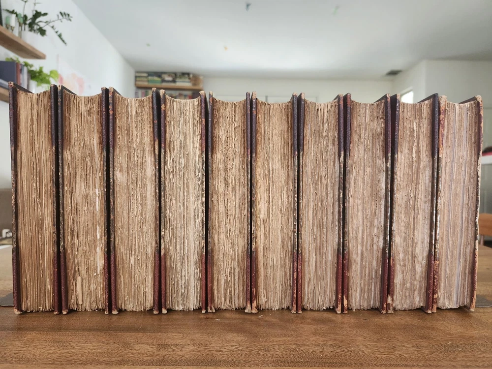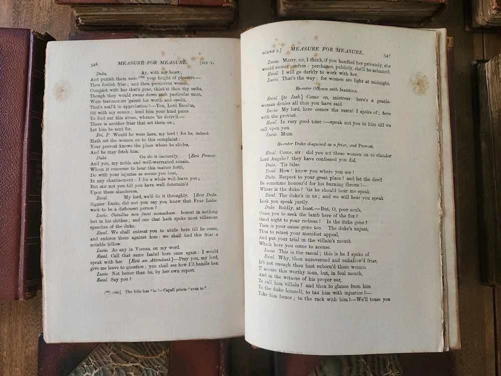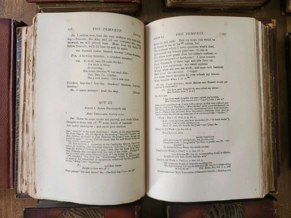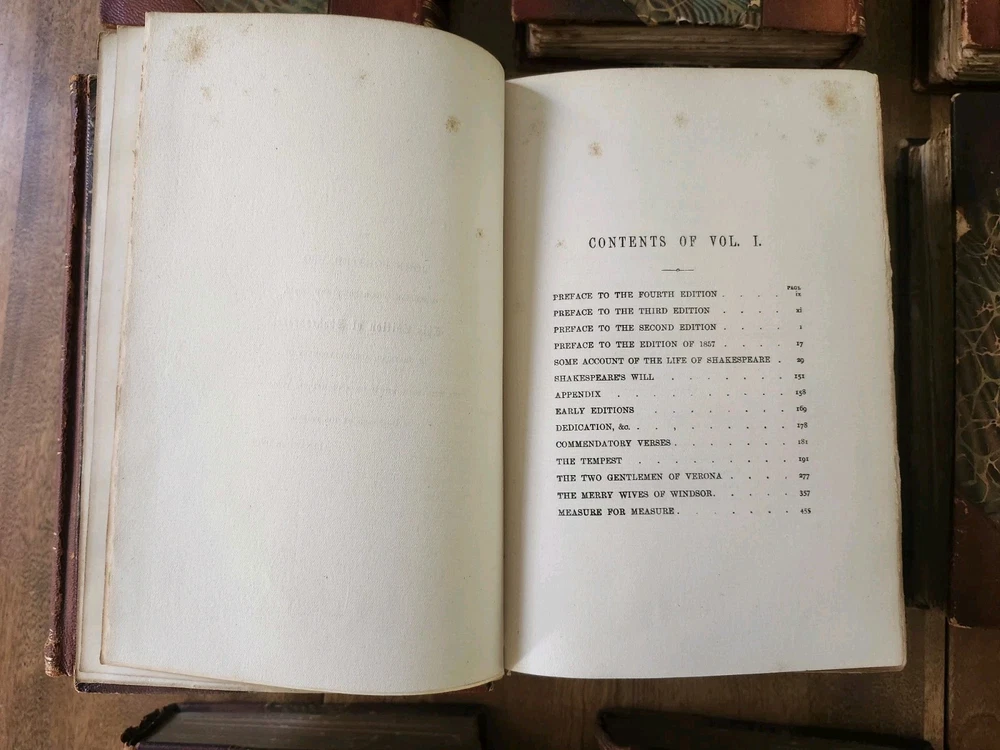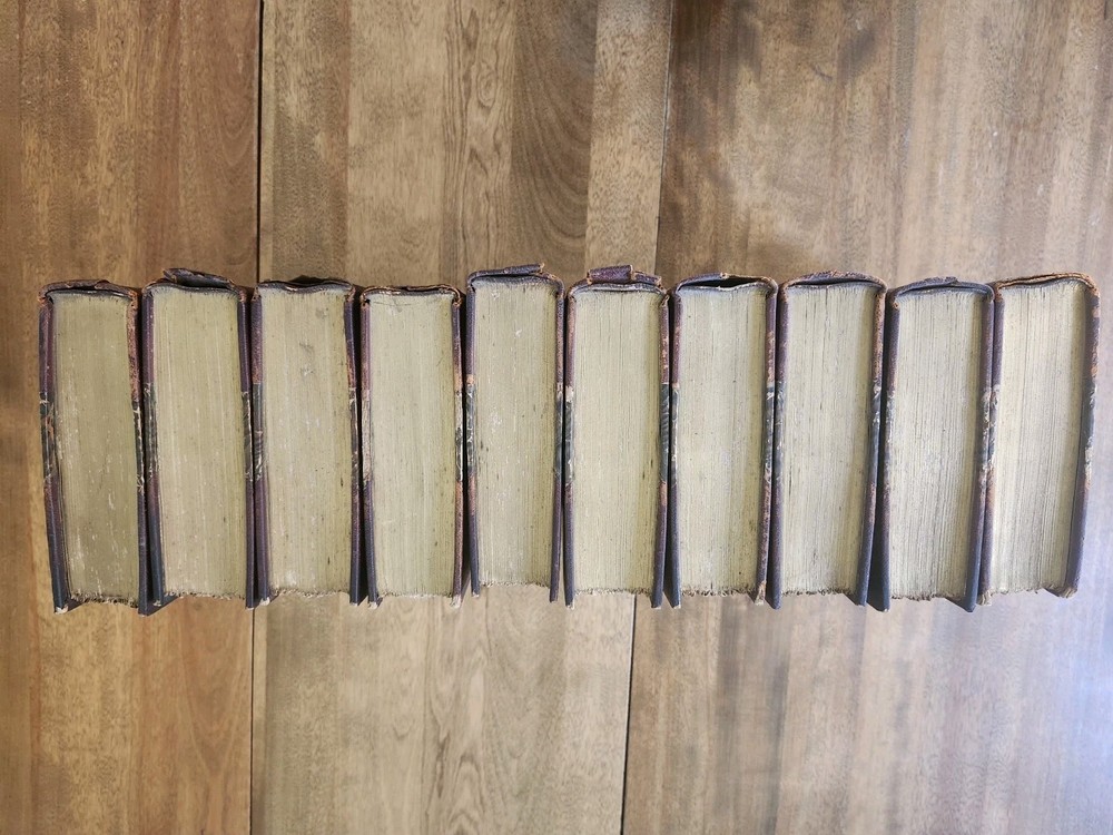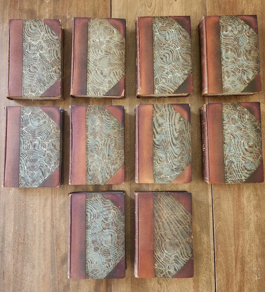 Complete Works of William Shakespeare 10 Vol LEATHER Stratford on Avon Ed 1880. This collectible set of Shakespeare's works is a must-have for any literature enthusiast. The beautiful leather binding and marbled end papers make for a stunning addition to any book collection. The set includes 10 volumes, each containing a variety of his plays and poetry, all written in the original English language. The set is intended for young adults and ages 9-12, but can also be enjoyed by adults. It was published in 1880 by Swan Sonnenschein and is a vintage Stratford-on-Avon edition. The set features quartered leather with marble boards, onion skin pages over illustrations, and hand-torn pages. This set is perfect for anyone interested in classic literature and the English Renaissance literary movement. Condition: I strive to take excellent photos so you can accurately see the condition of the books. Shipping: I ship in boxes and not padded envelopes to ensure your new books get to you safely. Offers encouraged!