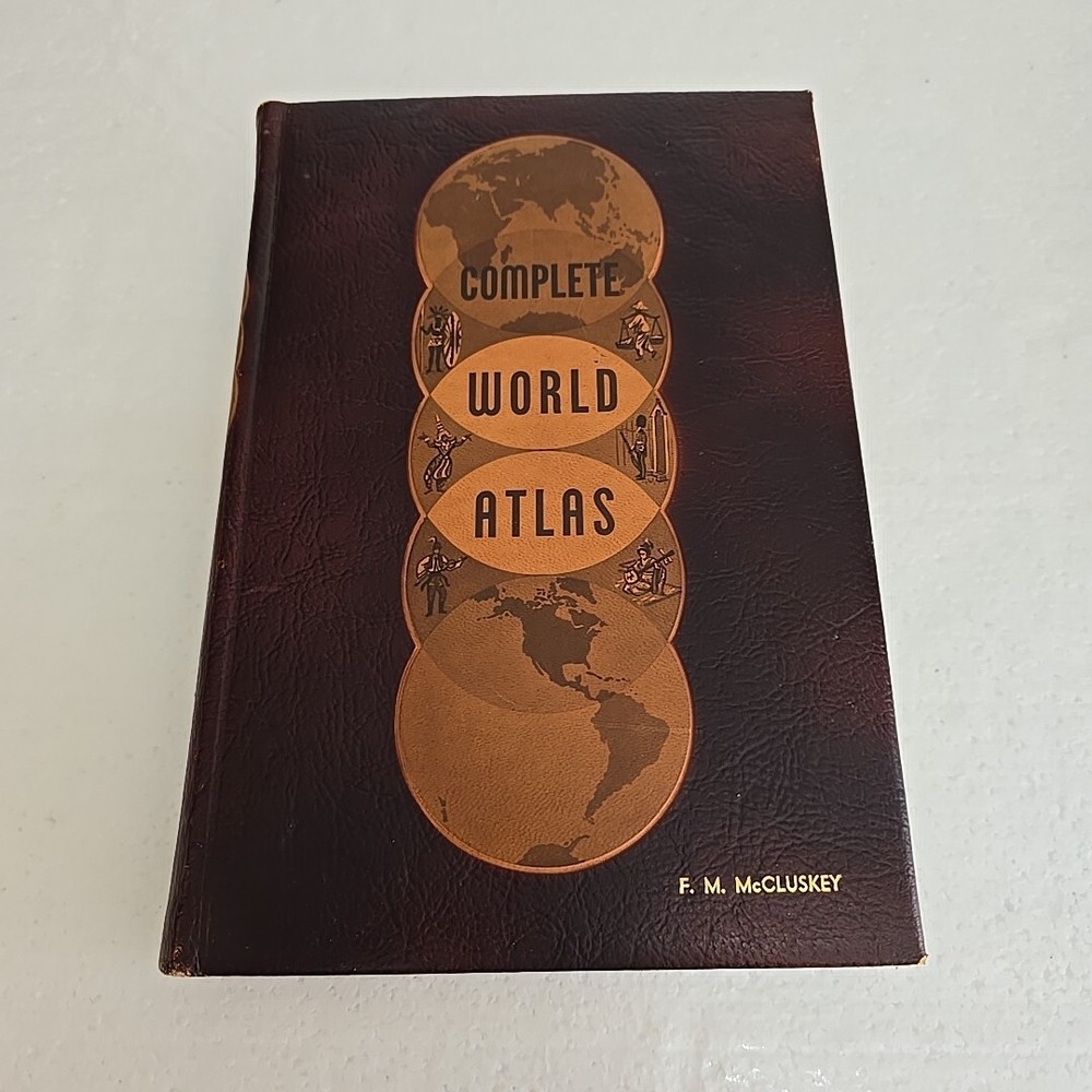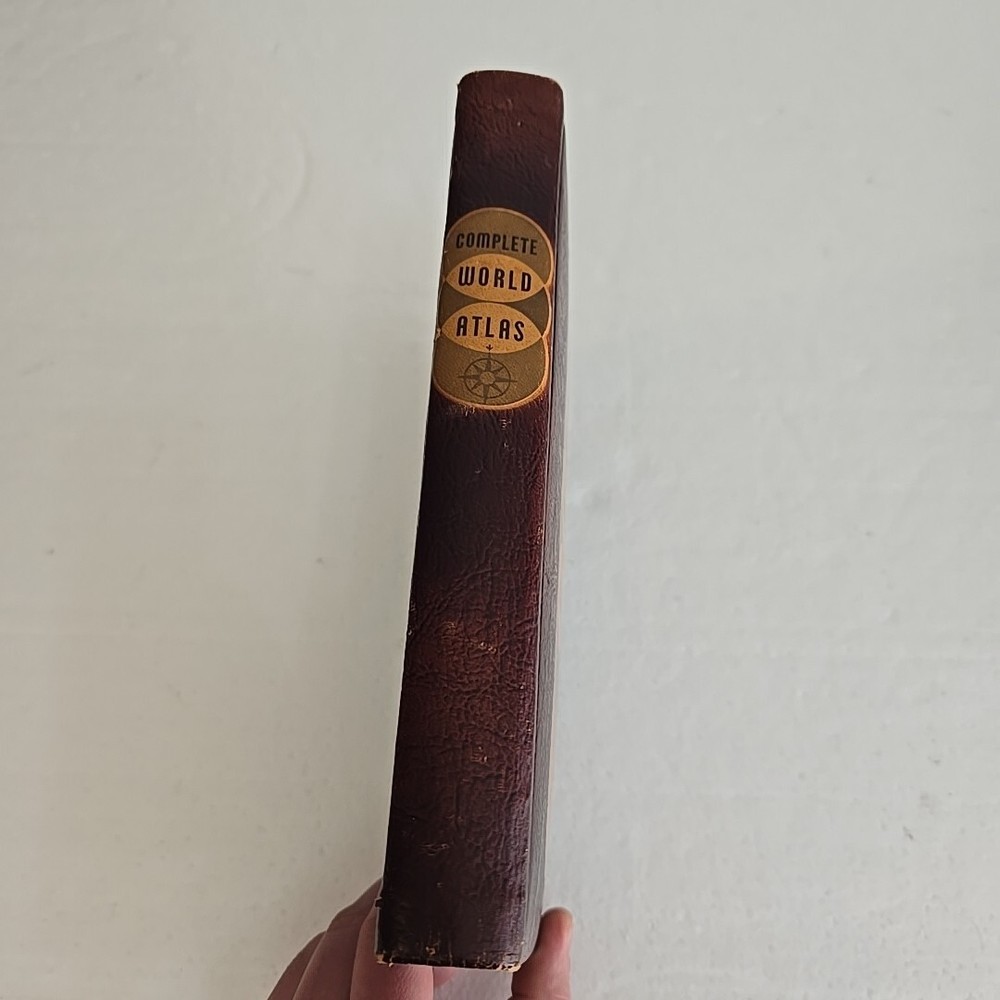 | Book Title | Complete World Atlas by Caleb D. Jr. Hammond Leather Bound 1959 V |
