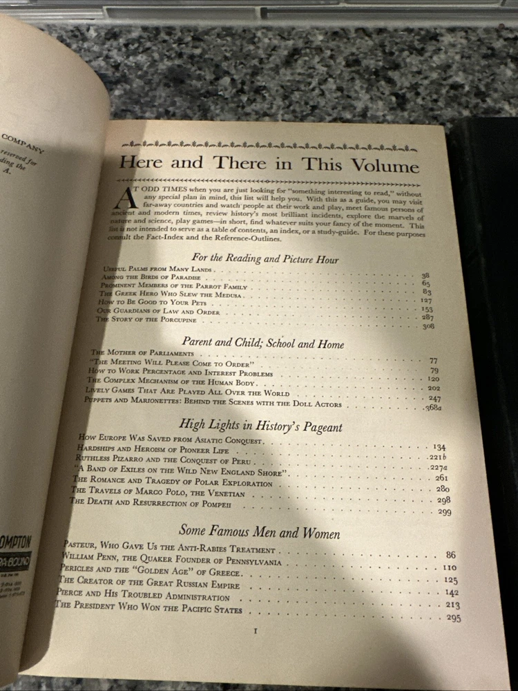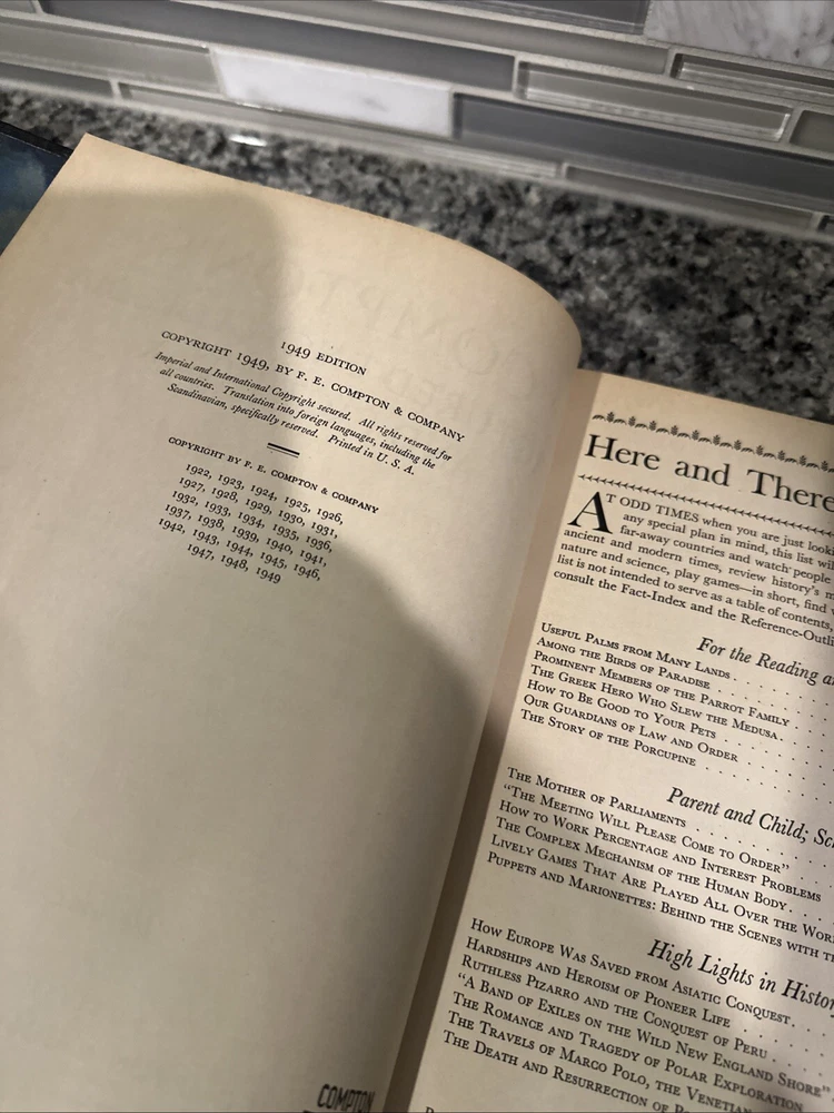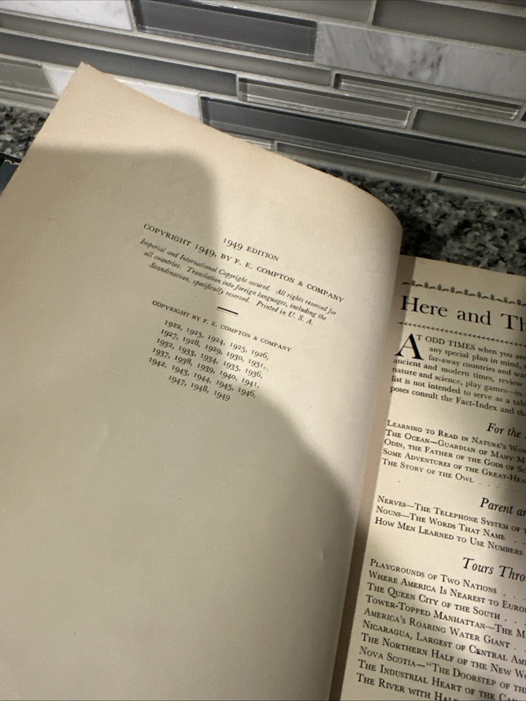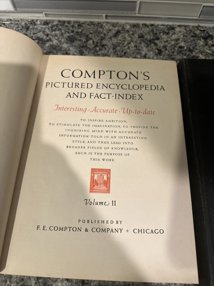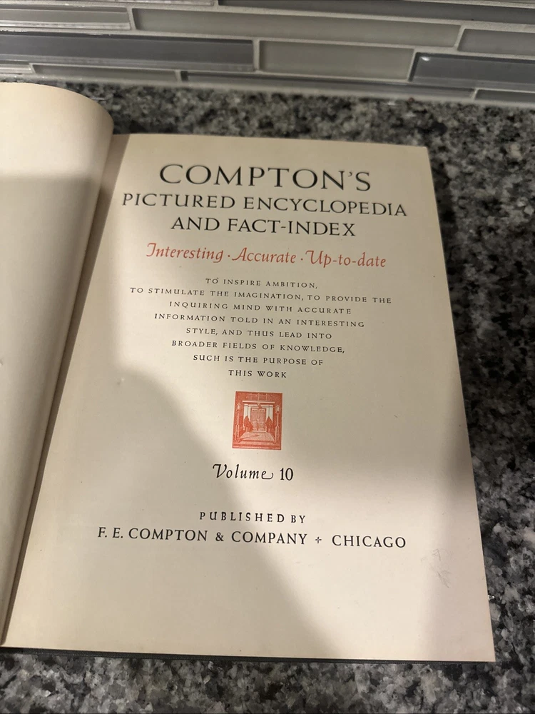 Nice lot - in great condition - The hardcover shows typical (minor) wear due to age, with a spine in very good condition and pages in mint condition. The exterior cover exhibits minor wear, adding to its vintage charm. See Pictures for details ā¦.exactly what you will receive! Please check out my other listings within the same volume series and additional offerings. Save on combined shipping and enjoy discounts for repeated purchases or buying multiple sets. š Compton's Pictured Encyclopedia Fact Index 1949 - Volumes #10 & #11 š Subject and Genre : Immerse yourself in the world of knowledge with the 1949 Compton's Pictured Encyclopedia Fact Index , specifically Volumes #10 and #11 . This vintage set is a goldmine of information, meticulously detailing a wide array of subjects across multiple disciplines. Renowned for its illustrated content, this encyclopedia serves not only as an educational resource but also as a visual delight, making it a treasured asset for both historians and collectors. Detailed Overview : Volume #10 : This volume covers topics from the letters "N" and "O" , providing in-depth articles on subjects such as Natural Sciences, Navigation, Ornithology, and Oceanography . The detailed illustrations and comprehensive content offer a rich educational experience. Volume #11 : Encompassing the letter "P" , this volume delves into areas like Philosophy, Physics, Poetry, and Psychology . The richly illustrated pages provide visual guides and explanations that enhance understanding. Why These Volumes Are Unique : Comprehensive Content : Authored by scholars and experts, the content is celebrated for its accuracy and educational merit, making it a reliable reference tool. Visual Appeal : The black embossed hardcover adds an element of elegance, while the detailed illustrations enrich the reading experience, making learning both engaging and visually stimulating. Historical Snapshot : Published in 1949, these volumes offer a fascinating glimpse into post-war knowledge and perspectives, encapsulating the academic standards and educational values of the time. Collector's Item : The classic leather binding and elegant design make this volume a prized possession for collectors and enthusiasts. Age and Value : These volumes, being over 70 years old , hold significant historical value. Their age adds to their charm, making them a valuable addition to any vintage book collection. Collectors and enthusiasts will appreciate the depth of knowledge and the craftsmanship involved in their creation. Condition : Good Condition : The hardcover shows minor wear, typical of vintage books, adding to its historical authenticity. Mint Pages : Inside, the pages are in mint condition, preserving the integrity and readability of the content. Own a piece of intellectual history with these beautifully crafted volumes of the Compton's Pictured Encyclopedia Fact Index . Perfect for collectors, educators, and anyone with a passion for vintage literature.