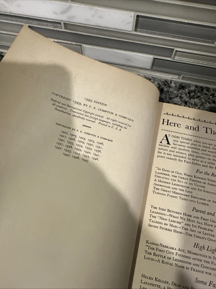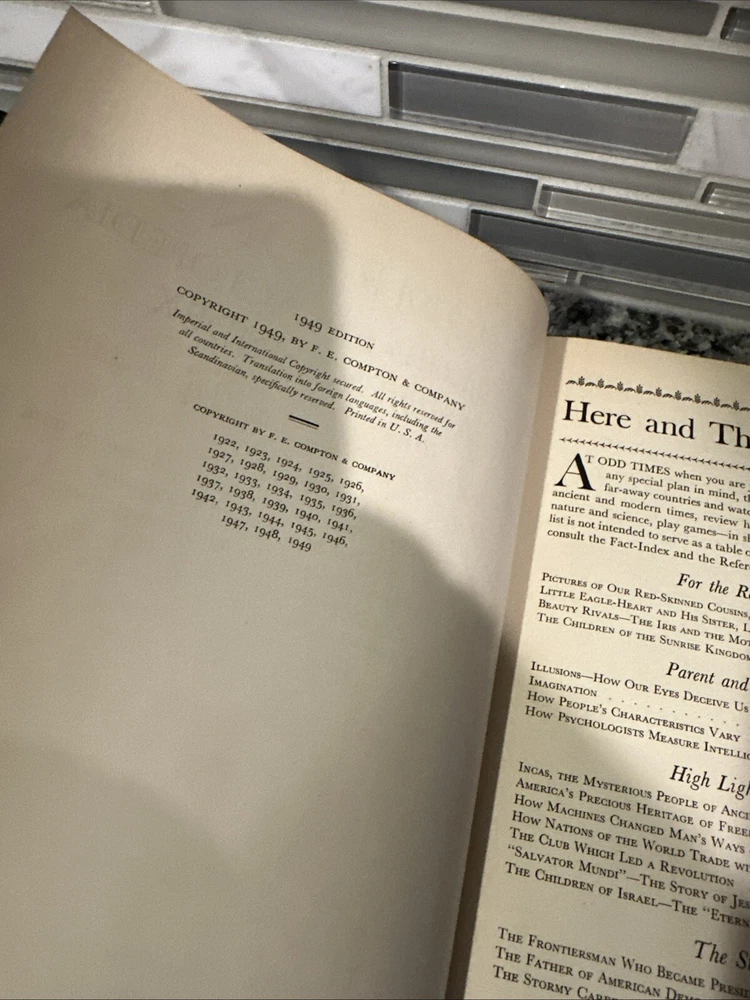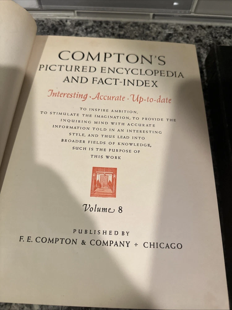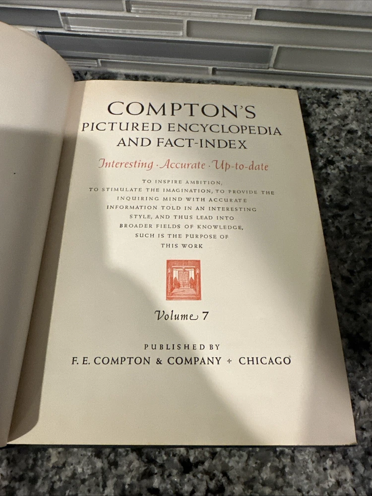 Nice lot - in great condition - The hardcover shows typical (minor) wear due to age, with a spine in very good condition and pages in mint condition. The exterior cover exhibits minor wear, adding to its vintage charm. See Pictures for details ā¦.exactly what you will receive! Please check out my other listings within the same volume series and additional offerings. Save on combined shipping and enjoy discounts for repeated purchases or buying multiple sets. š Compton's Pictured Encyclopedia Fact Index 1949 - Volumes #7 & #8 š Subject and Genre : Immerse yourself in the world of knowledge with the 1949 Compton's Pictured Encyclopedia Fact Index , specifically Volumes #7 and #8 . This vintage set is a goldmine of information, meticulously detailing a wide array of subjects across multiple disciplines. Renowned for its illustrated content, this encyclopedia serves not only as an educational resource but also as a visual delight, making it a treasured asset for both historians and collectors. Detailed Overview : Volume #7 : This volume covers topics from the letters "I" and "J" , providing in-depth articles on subjects such as Industry, Insects, Japan, and Journalism . The detailed illustrations and comprehensive content offer a rich educational experience. Volume #8 : Encompassing the letters "K" and "L" , this volume delves into areas like Kinetics, Literature, Law, and Languages . The richly illustrated pages provide visual guides and explanations that enhance understanding. Why These Volumes Are Unique : Comprehensive Content : Authored by scholars and experts, the content is celebrated for its accuracy and educational merit, making it a reliable reference tool. Visual Appeal : The black embossed hardcover adds an element of elegance, while the detailed illustrations enrich the reading experience, making learning both engaging and visually stimulating. Historical Snapshot : Published in 1949, these volumes offer a fascinating glimpse into post-war knowledge and perspectives, encapsulating the academic standards and educational values of the time. Collector's Item : The classic leather binding and elegant design make these volumes prized possessions for collectors and enthusiasts. Age and Value : These volumes, being over 70 years old , hold significant historical value. Their age adds to their charm, making them a valuable addition to any vintage book collection. Collectors and enthusiasts will appreciate the depth of knowledge and the craftsmanship involved in their creation. Condition : Good Condition : The hardcover shows minor wear, typical of vintage books, adding to its historical authenticity. Mint Pages : Inside, the pages are in mint condition, preserving the integrity and readability of the content. Own a piece of intellectual history with these beautifully crafted volumes of the Compton's Pictured Encyclopedia Fact Index . Perfect for collectors, educators, and anyone with a passion for vintage literature.