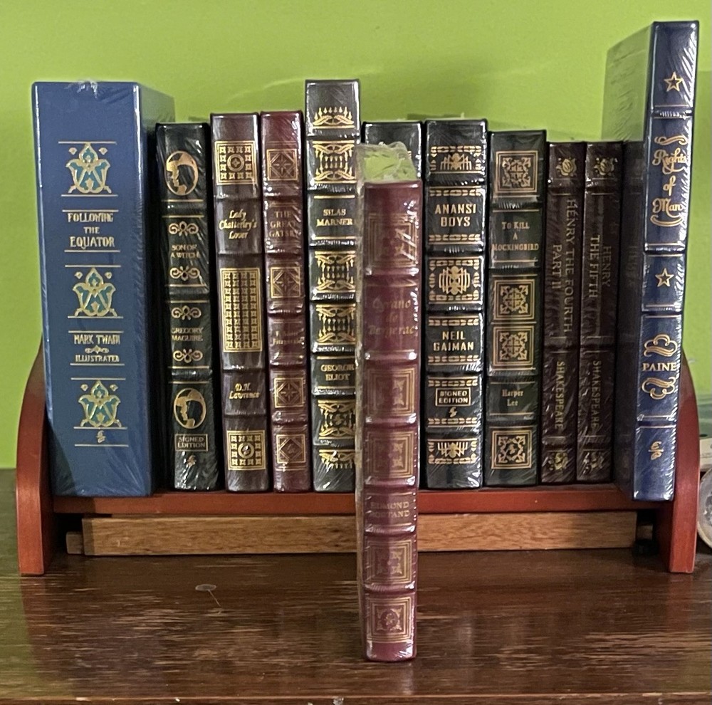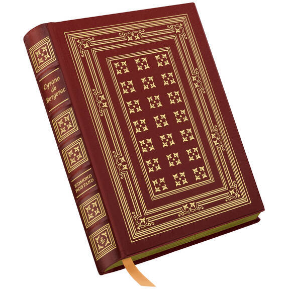 This is a leather bound collector's edition of "Cyrano de Bergerac" by Edmond Rostand, published by Easton Press. It is illustrated and written in English. The book is a facsimile reproduction and would be a valuable addition to any collection focused on antiques and collectibles. 7 3/8” x 10 1/4”, 232pp Features include: Fully bound in genuine leather. 22kt gold deeply inlaid on the "hubbed" spine. Superbly printed on acid-neutral paper that lasts for generations. Sewn pages — not just glued like ordinary books. Handsome moiré endpages and a satin-ribbon page marker. Gilded page ends. Printed and bound in the USA. Imported materials. Rigorous inspection at every stage ensures adherence to exacting standards. Superb craftsmanship and commitment to quality.