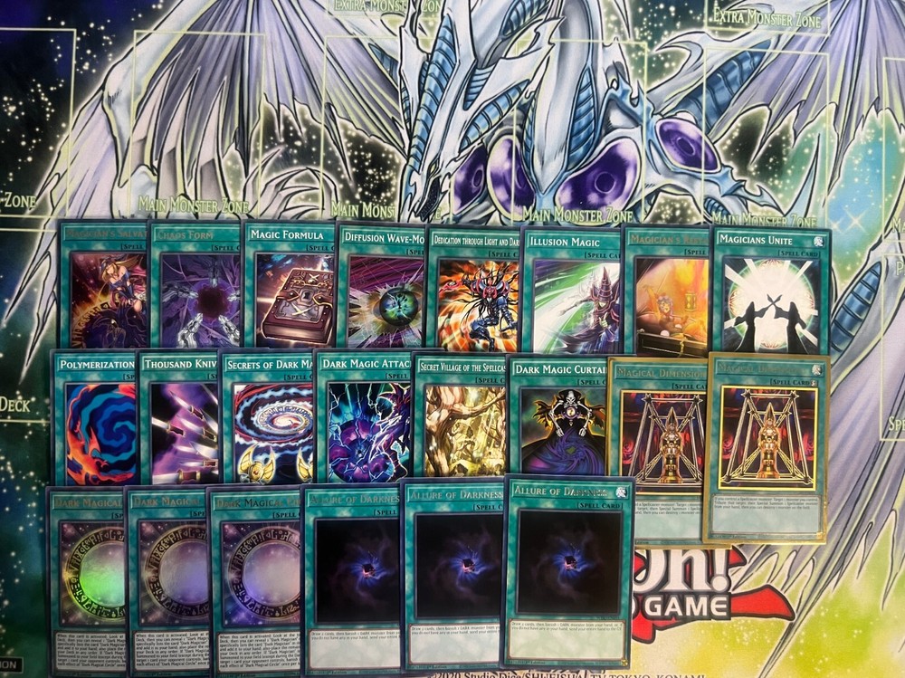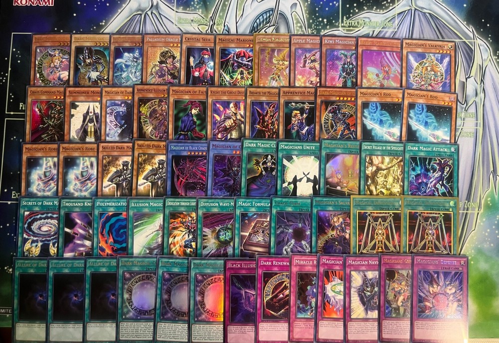 Hello! You are purchasing the deck list below, the cards will be English, real, and near mint to light play condition at worst. All decks are built with the lowest rarities for cards in mind to keep the price of the deck low and affordable for all duelists! Some cards may be in speed duel printing if this is the cheapest available copy of the card, but do not worry these are real cards and legal for tournament use! Purchase with confidence and safety! As an added bonus one pack of card sleeves will be included with your deck! Thanks again and good luck dueling! Now here's the decklist; Monsters: 1| Dark Magician Girl 1| Dark Magician 1| Magician's Valkyria 1| Berry Magician Girl 1| Kiwi Magician Girl 1| Apple Magician Girl 1| Lemon Magician Girl 1| Magical Marionette 1| Crystal Seer 1| Palladium Oracle Mana 1| Chronicle Magician 1| Magician of Chaos 1| Magician of Black Chaos Max 1| Dark Magician of Chaos 1| Apprentice Magician 1| Breaker The Magical Warrior 1| Kycoo The Ghost Destroyer 1| Magician of Faith 1| Apprentice Illusion Magician 1| Magician of Dark Illusion 1| Summoner Monk 1| Chaos Command Magician 2| Skilled Dark Magician 2| Magician's Robe 2| Magician's Rod Spells; 1| Magicians Unite 1| Magician's Restage 1| Illusion Magic 1| Dedication Through Light and Darkness 1| Diffusion Wave-Motion 1| Magic Formula 1| Chaos Form 1| Magician's Salvation 1| Dark Magic Curtain 1| Secret Village of the Spellcasters 1| Dark Magic Attack 1| Secrets of Dark Magic 1| Thousand Knives 1| Polymerization 2| Magical Dimension 3| Allure of Darkness 3| Dark Magical Circle Traps: 1| Black Illusion 1| Dark Renewal 1| Miracle Restoring 1| Magician's Circle 1| Magician Navigation 1| Magicians' Combination 1| Magicians' Defense Extra Deck: 1| Ebon Illusion Magician 1| Ebon High Magician 1| Artemis, The Magistus Moon Maiden 1| Selene, Queen of the Master Magicians 1| Dark Paladin 1| Mysterion The Dragon Crown 1| Dark Magicians The Knight of Dragon Magic 1| Dark Magician The Dragon Knight 1| Quintet Magician 2| The Dark Magicians