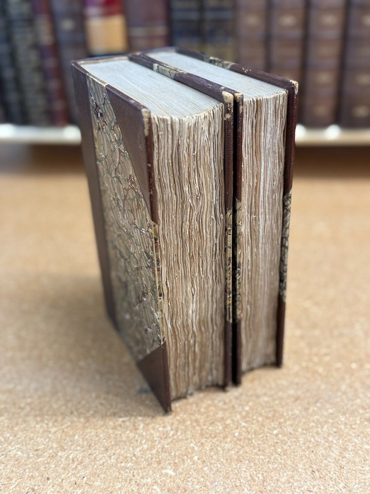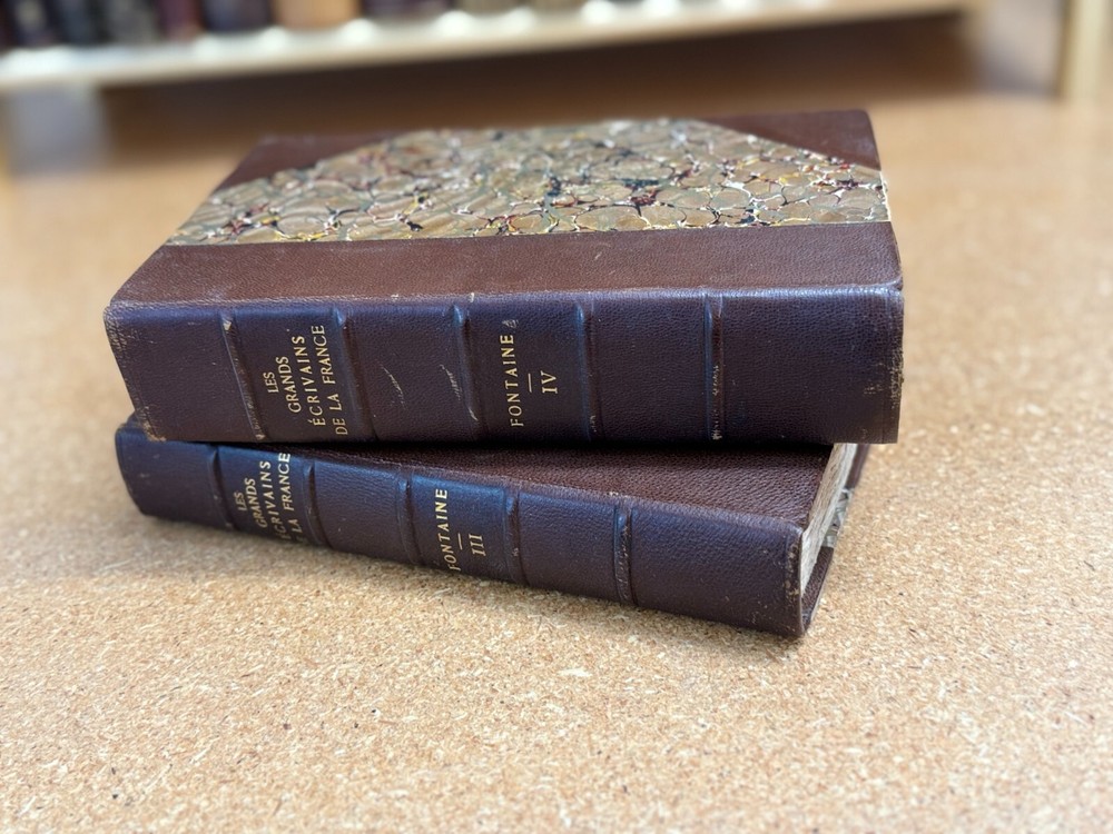 Excellent condition, dark brown leather-bound antique 2 book set as shown in photos. Wonderful antique deckled page edges. Language is French. Fontaine - Les Grands Ecrivains de la France ("The Great Writers of France") Vol III Fontaine - Les Grands Ecrivains de la France ("The Great Writers of France") Vol IV Nice size set dimensions are approx 9.25"H x6"D x3.75"W These antique leather books are a must-have for any collector or lover of vintage decor. The set consists of a foot of beautifully bound leather books, perfect for displaying on a bookshelf or coffee table. The unique binding style of the books adds an extra touch of elegance to any room. Each book in the set is crafted with the highest quality leather, ensuring durability and longevity. The intricate details and unique design of each book make this set a true treasure for any antique book enthusiast. Whether you're looking to add to your collection or simply looking for a stunning piece of decor, this antique leather book set is sure to impress. At Rarified Books we have cultivated sources for antique books over our many years in business. Our carefully curated sets of high-quality books offer a diverse range of literature, history, philosophy, and the arts, meticulously selected to enrich any interior. With publication dates spanning from 18 00 to 1920, each book in our collection is a stunning testament to a bygone era, showcasing unparalleled craftsmanship and an abundance of character. NB: Books are non-returnable, but we will be glad to send you more detailed photos before shipping. Please message us before purchase. ~~~~~~~~~~~~~~~~The Fine Print~~~~~~~~~~~~~~~~: At Rarified Books, we take pride in offering items of extraordinary quality, value and condition. We offer the finest in modern leather-bound books and more. Books are sourced from a wide variety of sources, and are carefully inspected. Other items are equally carefully sourced ... check out our other listings and see! All descriptions are to the best of our knowledge. Sales are made as-is and no warranty is offered as to authenticity or provenance. Title passes to the buyer upon shipment. All sales are final. Sales tax may apply which is collected automatically by eBay. Returns are not accepted except in rare circumstances upon agreement. Shipping is the responsibility of the buyer unless otherwise noted or agreed. Books are professionally wrapped and protected in bubble wrapping for shipping, with additional cushioning void filler in an appropriately sized carton or padded envelope. Most books will be shipped via USPS Media Mail with tracking or FedEx Home Delivery. International Shipping through eBay's Global Shipping Program only. International buyers are responsible for all local customs fees, taxes, and duties. These charges are not included in our shipping costs. We also buy books and are always open to purchasing excellent condition books from Easton Press, Franklin Library, Folio Society and similar as well as other rare and collectible books. See our website www.modernleatherbooks.com and let us know what you have. Thank you for considering our listing!