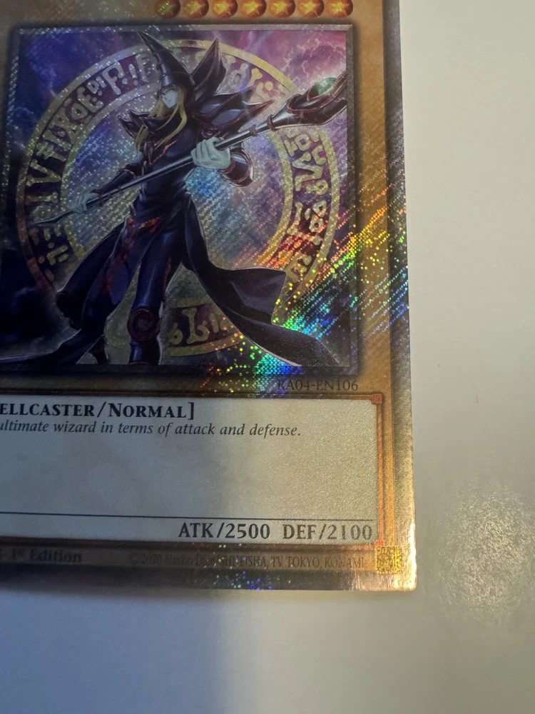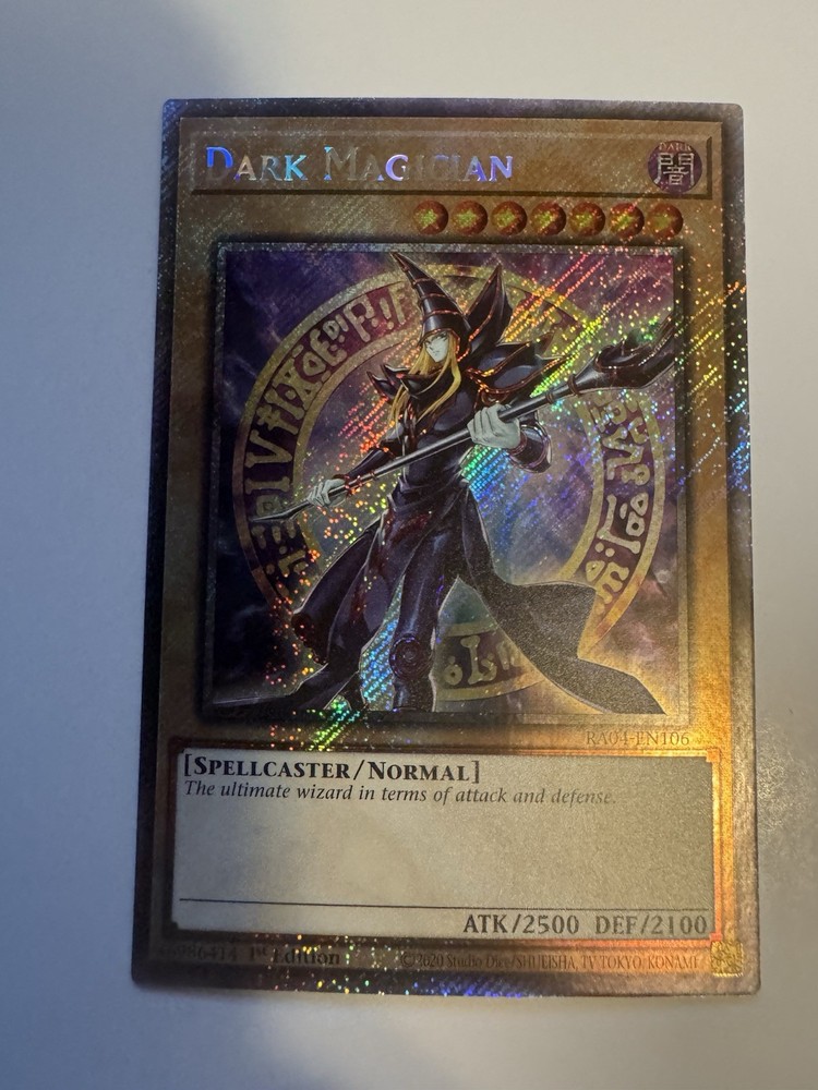 Card is in great condition, Pack Fresh Im gonna be selling my collection that I have been collecting for over the past 5 years. Follow my profile for new things that I post. Gonna be selling my sealed Pokemon, Yu-Gi-Oh, One Piece and Sports Booster boxes, Booster Packs and Single cards as well as video games and collectible toys Ships Ebay standard The Dark Magician 8th Art 1st Edition Platinum Secret Rare card is a highly sought-after collectible card game item from the Platinum set by Konami. This rare card features the iconic Dark Magician character in a unique 8th Art design, making it a valuable addition to any collection. With its platinum rarity and 1st edition status, this card is a must-have for fans and collectors of the game.
