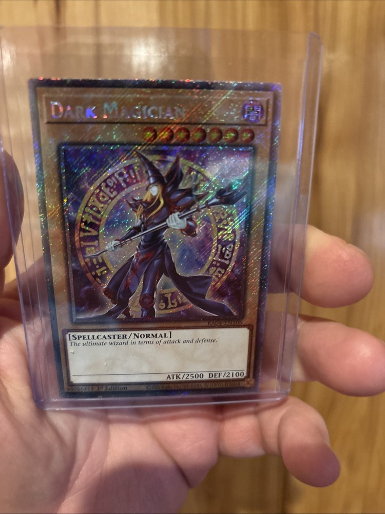 Immerse yourself in the world of spellcasting and strategy with the Dark Magician (8th Art) (Platinum Secret Rare) RA04-EN106 card, a must-have for any Yu-Gi-Oh! TCG enthusiast. With its striking artwork and significant stats, this card is a formidable addition to any deck. Featuring a powerful attack of 2500 and a defense of 2100, it's capable of tipping the scales in your favor during duels. Collectors will appreciate that it's a 1st Edition Platinum Secret Rare, hailing from the exclusive Quarter Century Stampede set. The card is produced by the renowned Konami and comes in English, ensuring it fits seamlessly into your existing collection or deck. Whether you're a seasoned player or a serious collector, the Dark Magician is a timeless piece that embodies the spirit of the game.