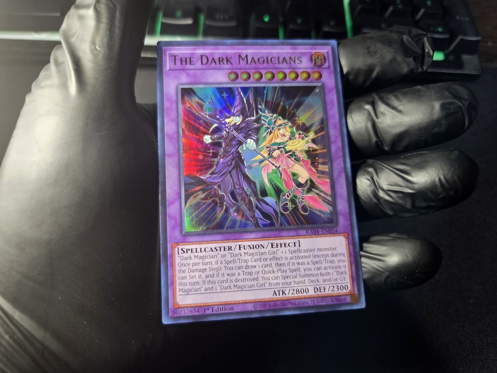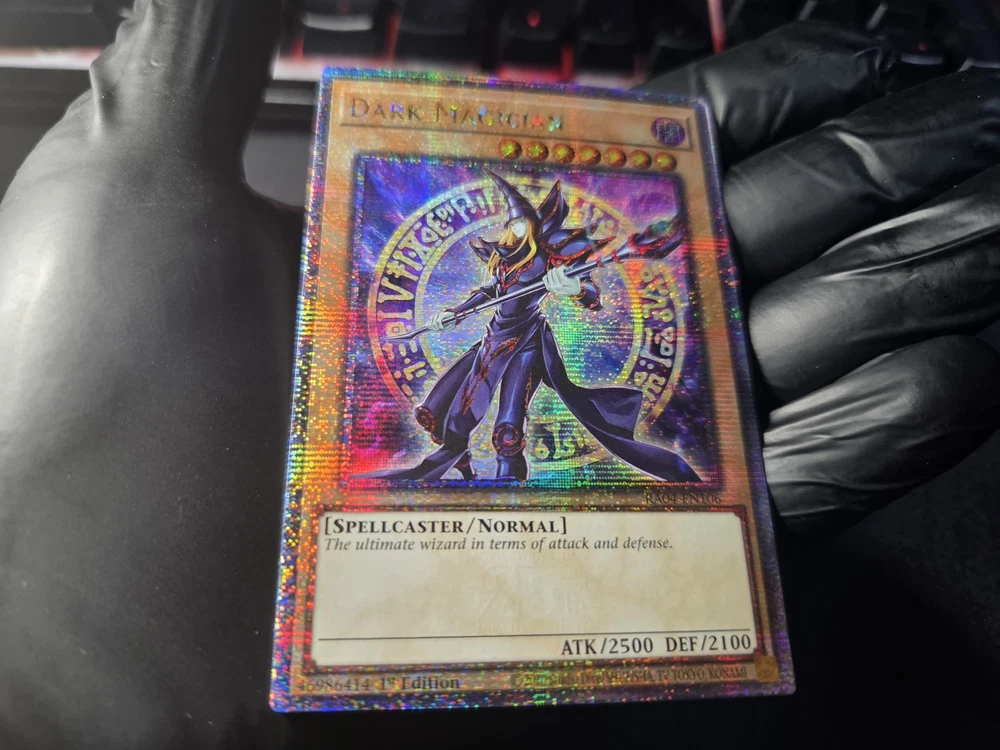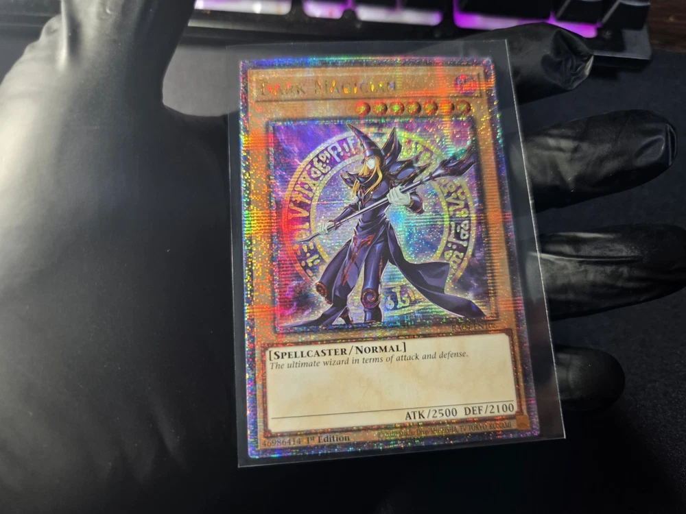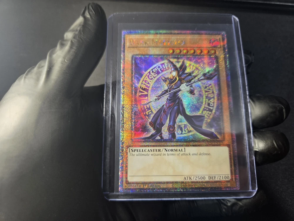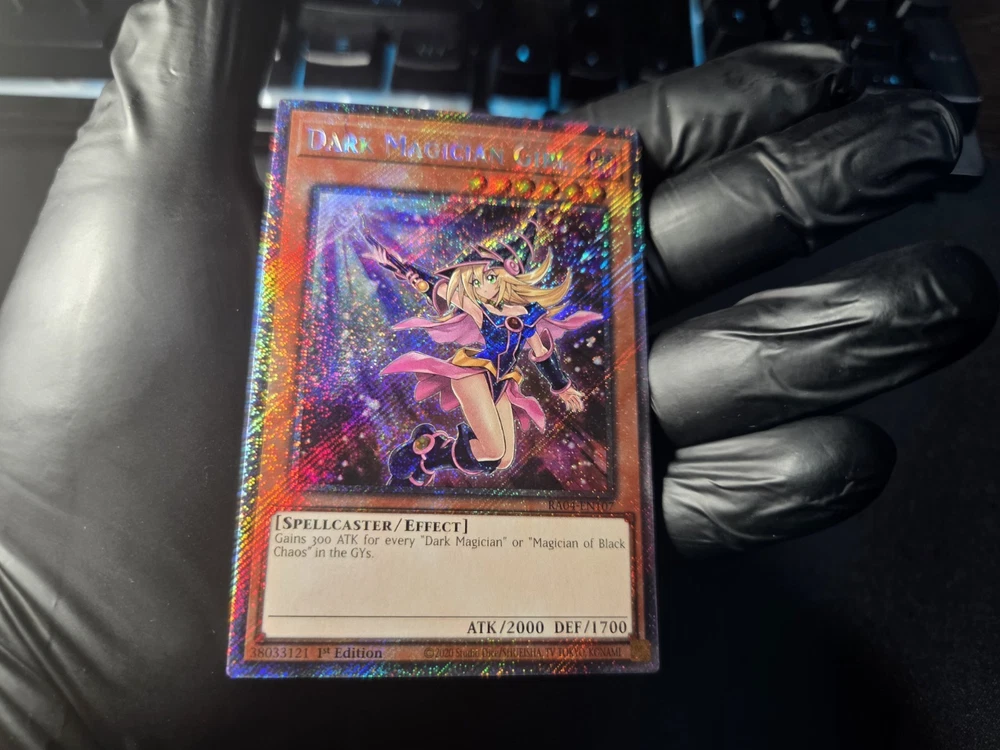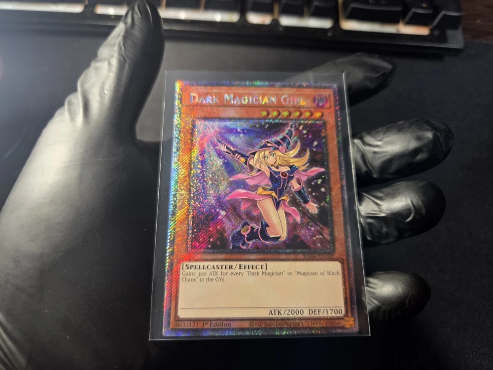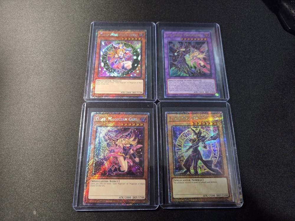 Dark Magician (8th Art) (Quarter Century Secret Rare) , Dark Magician Girl (3rd Art) (Platinum Secret Rare) , Dark Magician Girl (7th Art) (Platinum Secret Rare) & the dark magicians. all well protected.